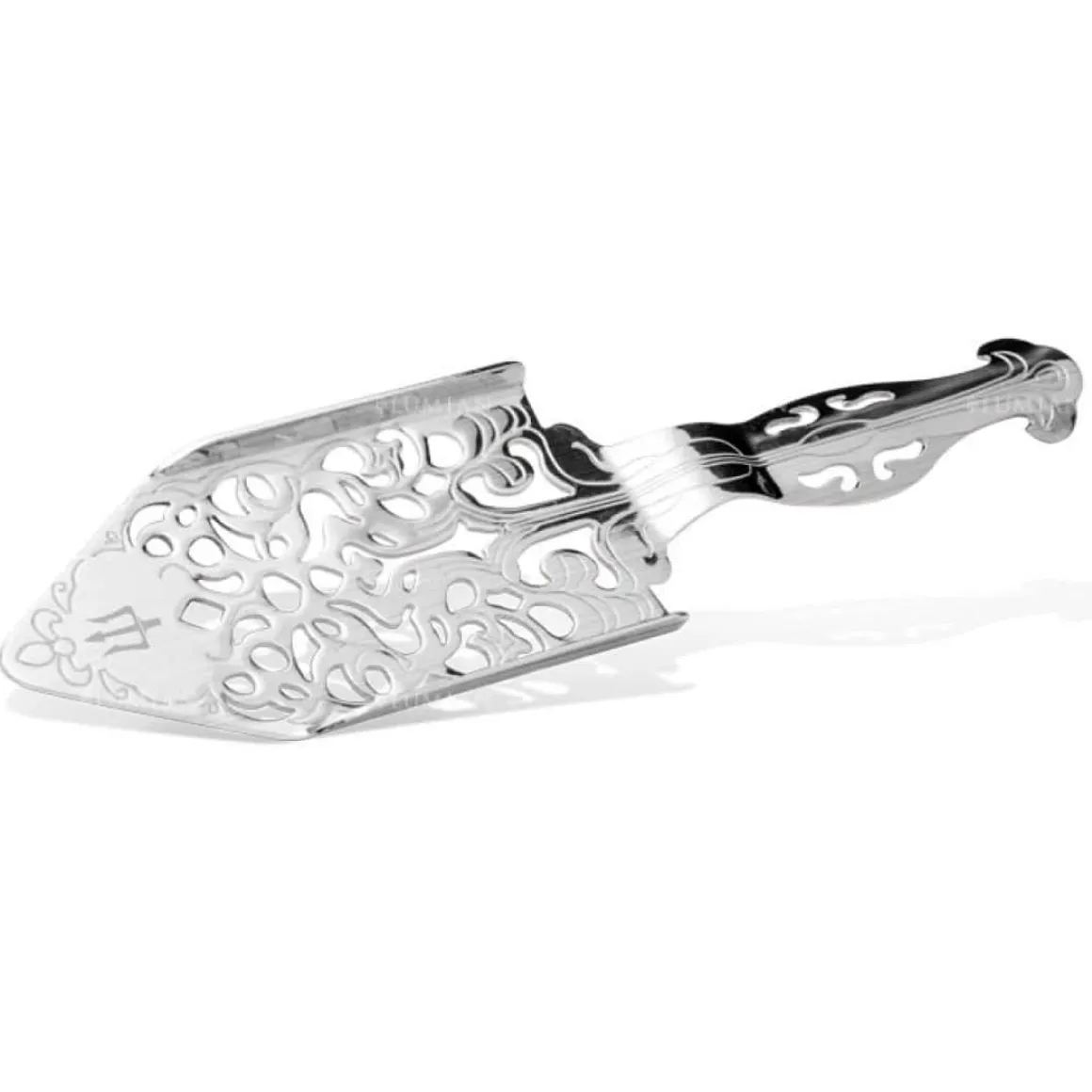 Reich verzierter Absinthlöffel mit einer Länge von 16 cm. Absinthlöffel werden zur Zubereitung von Absinth und Feuerzangenbowle benutzt.