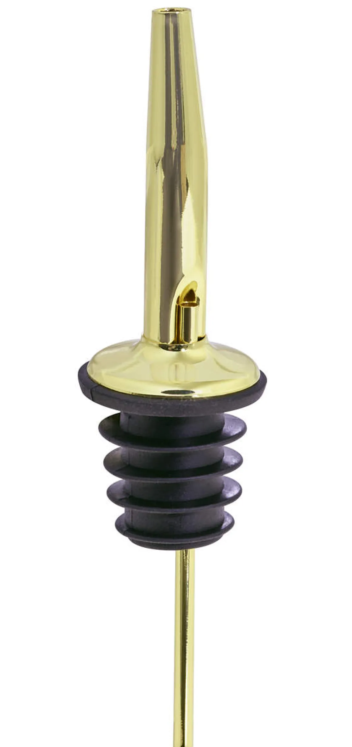 Ausgießer aus Edelstahl in Farbe Gold für Spirituosen, Säfte und andere Flüssigkeiten. Mit 4 unterschiedlich großen Dichtringen aus Kunststoff, so dass die Ausgießer auf viele Flaschen passen.