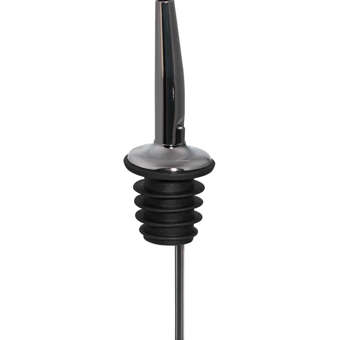 Ausgießer aus Edelstahl in Farbe Gunmetal Schwarz für Spirituosen, Säfte und andere Flüssigkeiten. Mit 4 unterschiedlich großen Dichtringen aus Kunststoff, so dass die Ausgießer auf viele Flaschen passen.