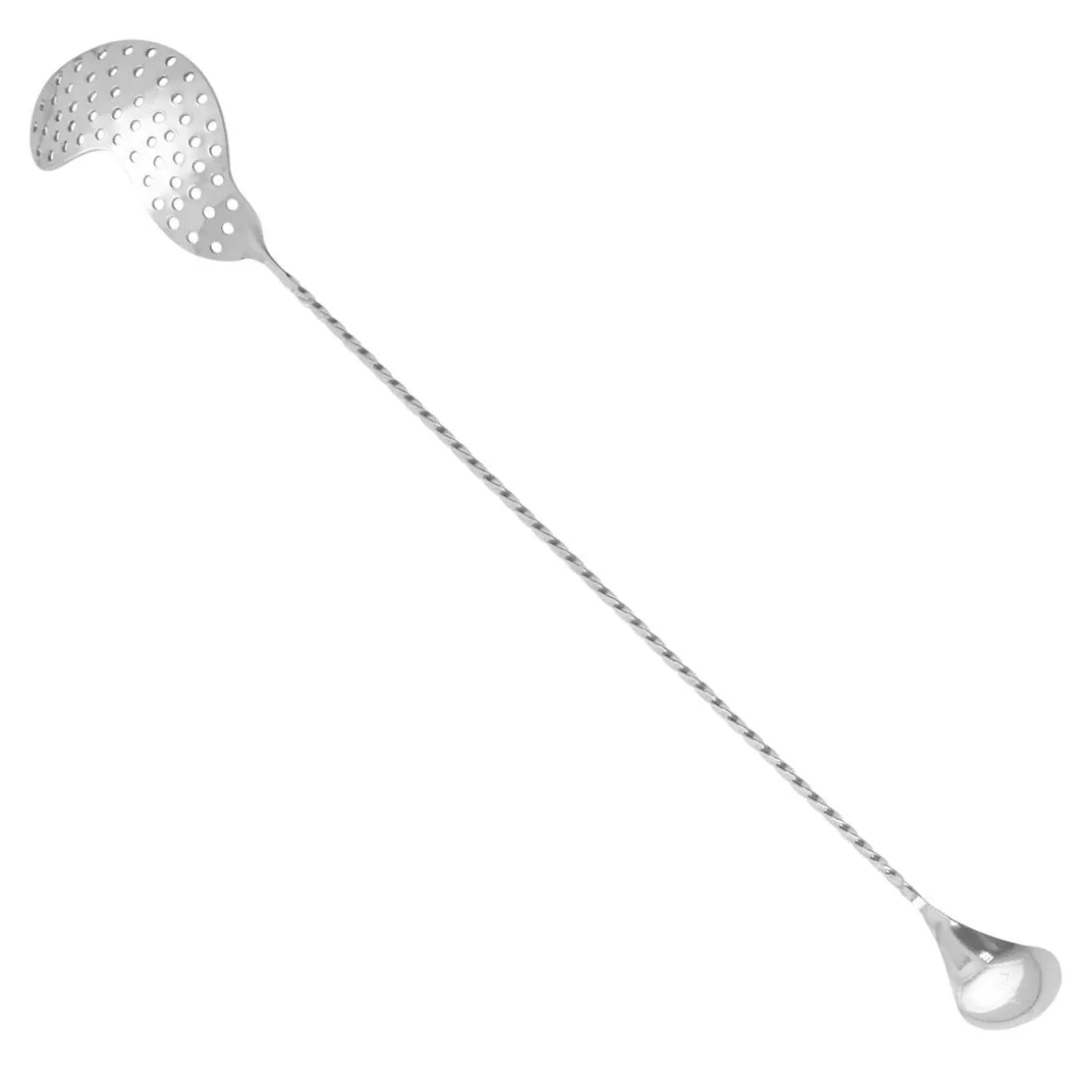 Der Barlöffel besitzt einen gedrehten Stiel, um das Rühren zu erleichtern und wurde aus Edelstahl hergestellt.