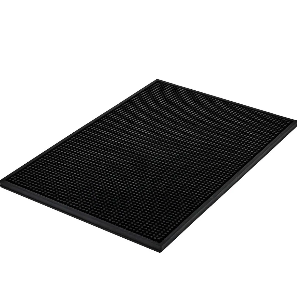 Barmatte aus schwarzem Gummi mit einer Größe von 45×30 cm. Mit einer Höhe von 2 cm ist die Barmatte stabiler als viele Standardausführungen.