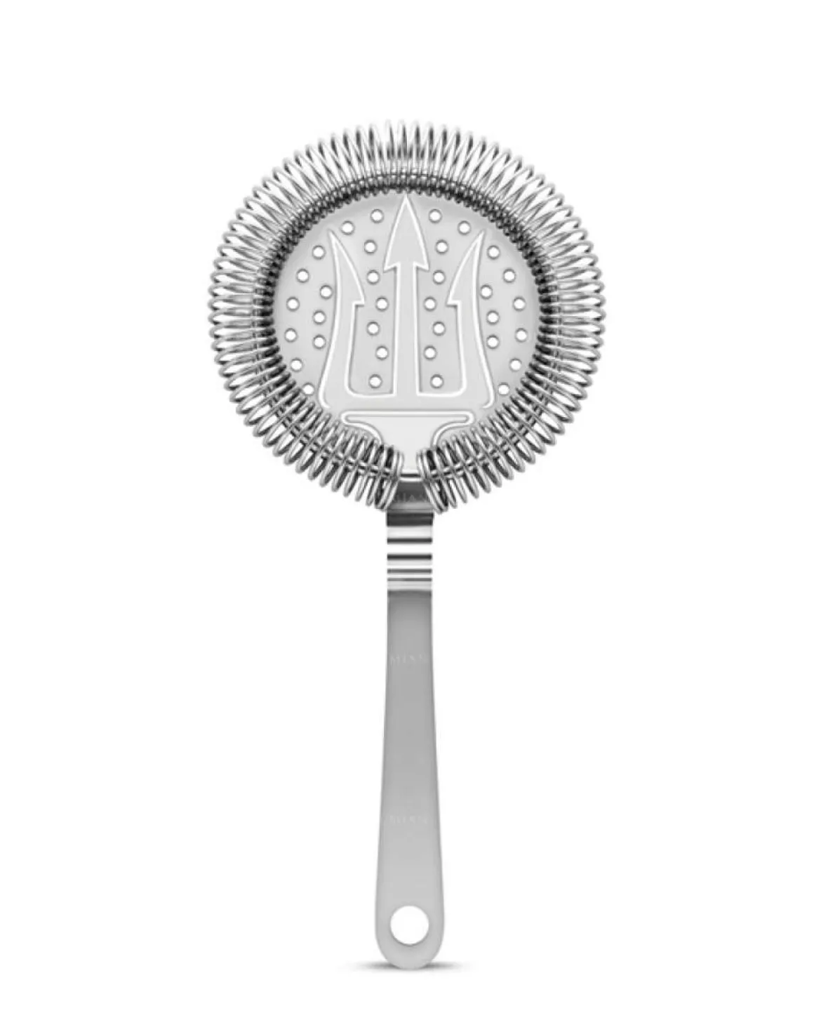 Das Barsieb Venus fällt direkt mit seinem auffälligen Design ins Auge. Statt wie üblich nur mit kleinen Löchern durchstochen, wurde bei diesem Hawthorne Strainer zusätzlich eine Dreizack-Form in die Trägerplatte eingestanzt. Es sieht so aus, als würde der Dreizack aus dem Griff herausragen.