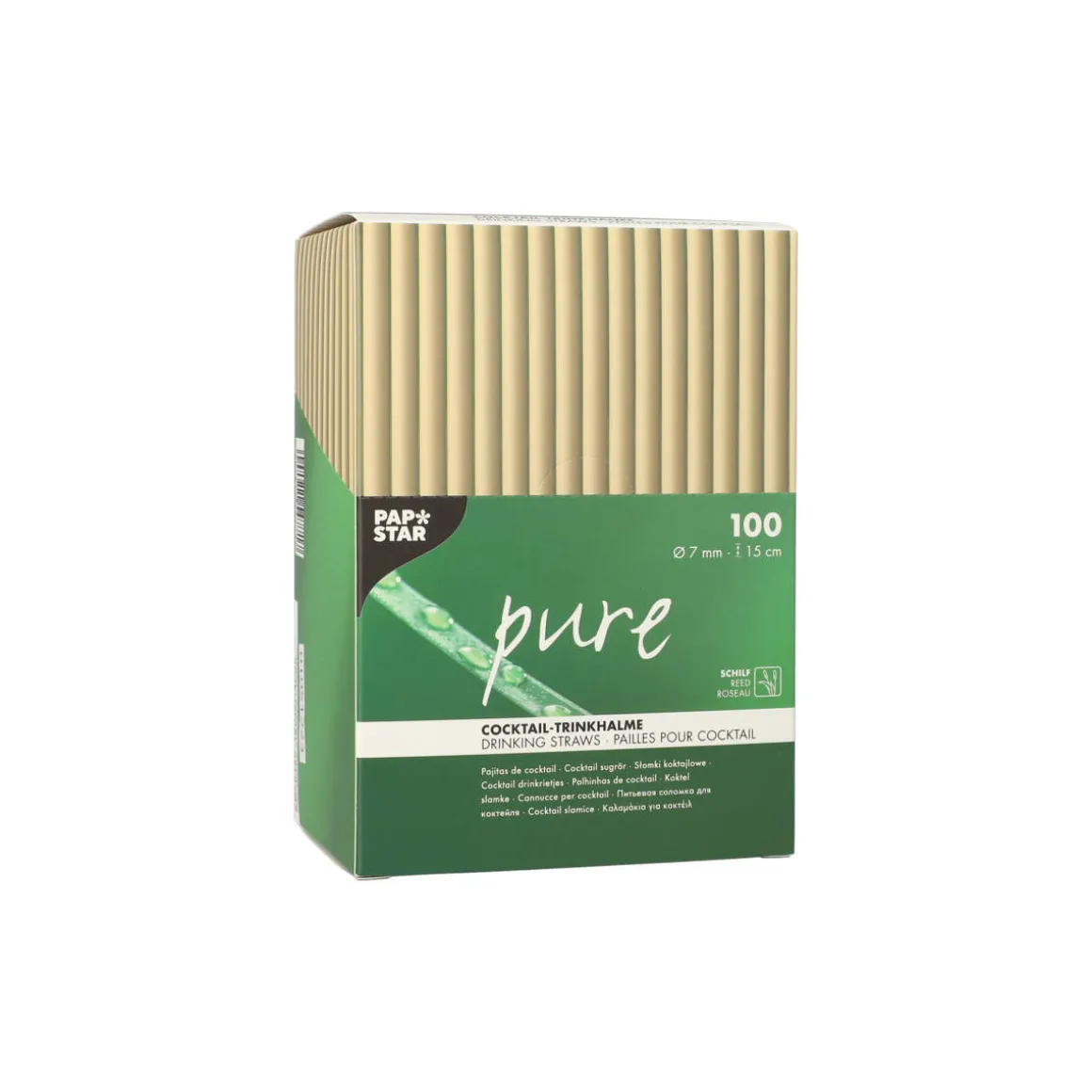 Bio-Strohhalm aus Schilf | Ø 7 mm x 15 cm – Papstar Pure (100 Stk)