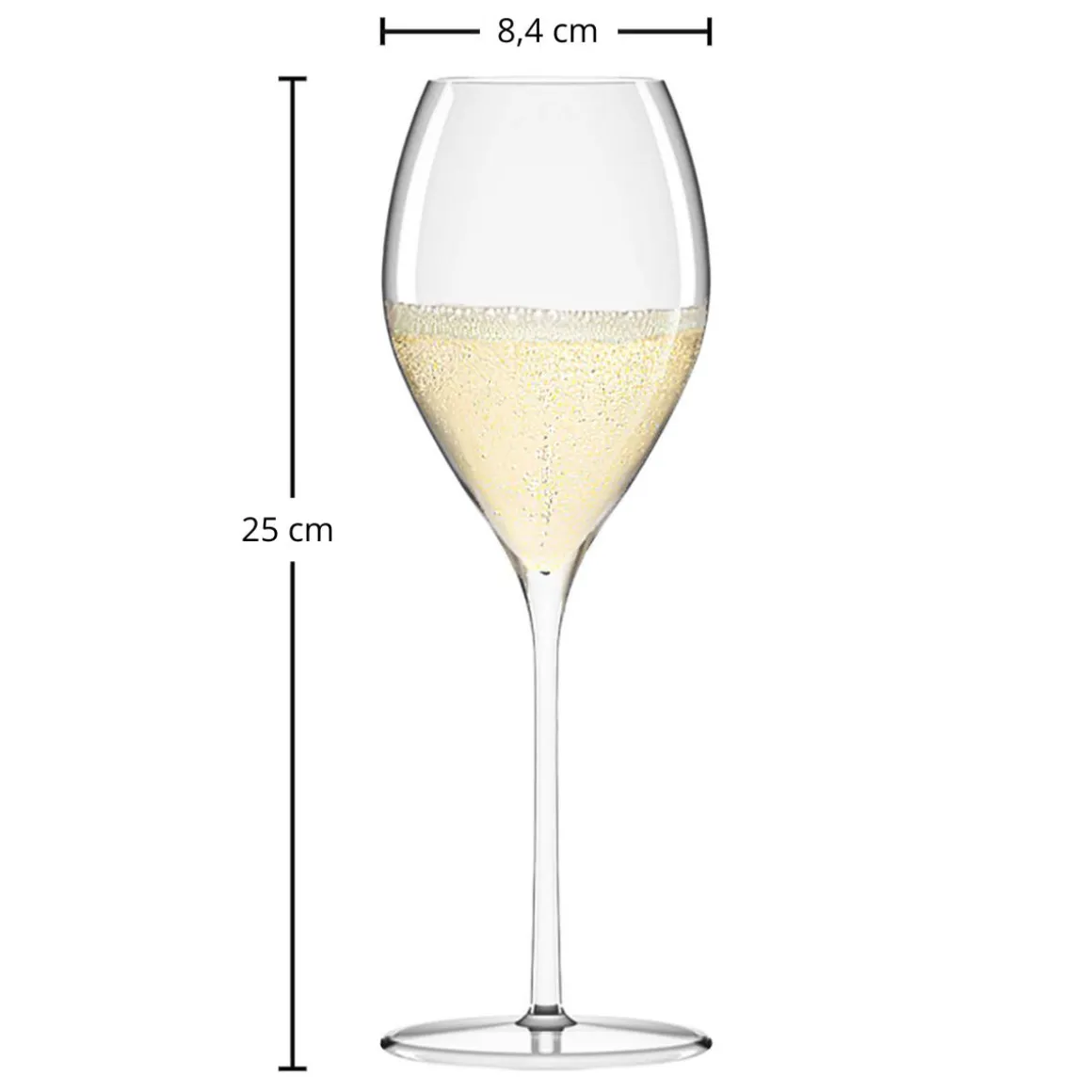 - Großzügiger Kelch – entfaltet Aromen edler Schaumweine
