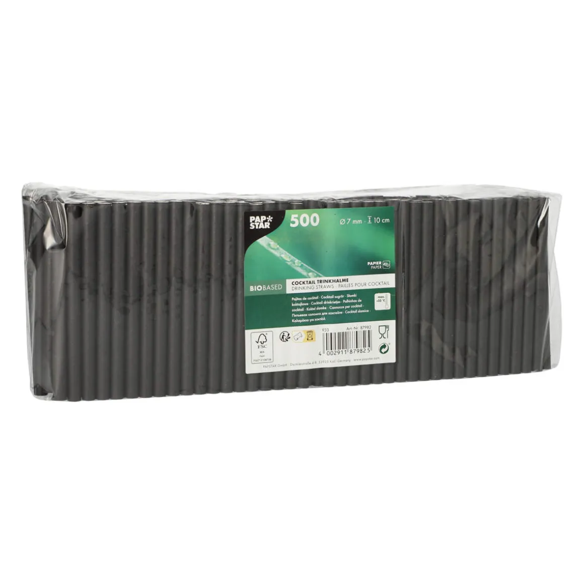 Produktinformationen „Cocktail Papierstrohhalm | Schwarz – Ø 7 mm x 10 cm – Papstar Pure (500 Stk)“