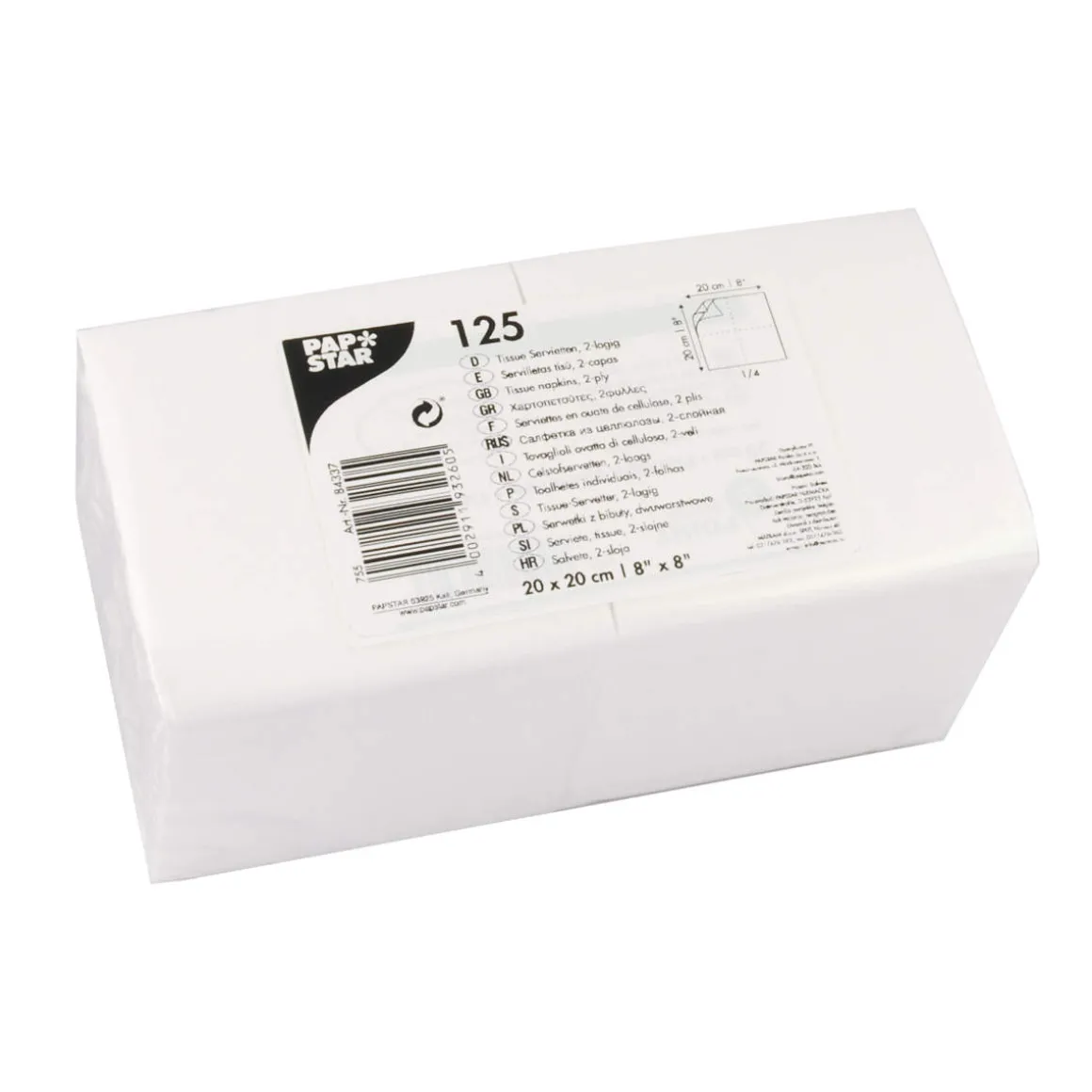 Cocktail-Serviette 20×20 cm | Weiß – ¼ Falz – 2-lagig (125 Stk)