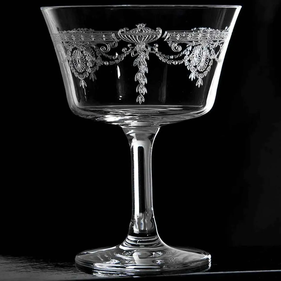 Elegantes Cocktailglas mit feiner Verzierung im Stil der 1890er Jahre von UrbanBar. Mit dieser Cocktailschale im Vintage-Look erhalten Sie einen Hingucker für ihre Cocktailbar oder den privaten Cocktailabend. Das 1890er Retro Fizz bringt den Charme der Entstehungsjahre der modernen Cocktailkultur in Ihre Bar.