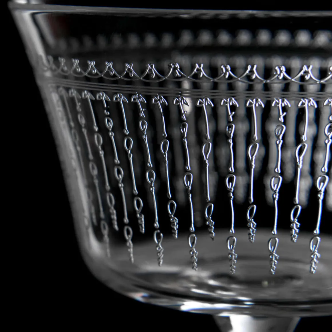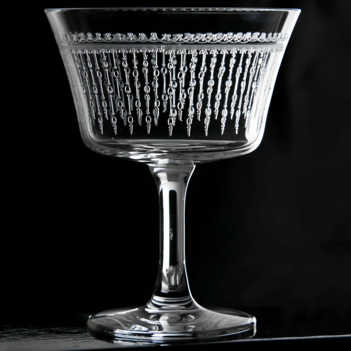 Elegantes Cocktailglas mit feiner Verzierung im Stil der 1920er Jahre von UrbanBar. Mit dieser Cocktailschale im Vintage-Look erhalten Sie einen Hingucker für ihre Cocktailbar oder den privaten Cocktailabend.