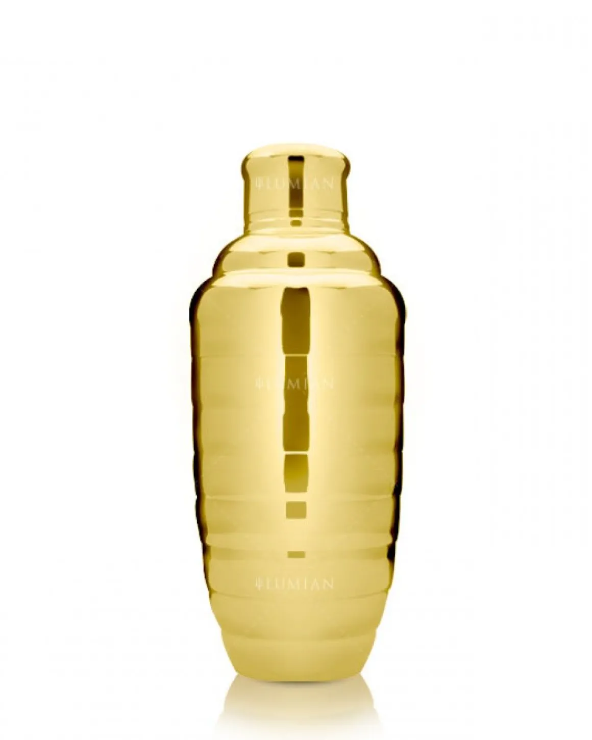 Der Cocktail Shaker Bomber sticht durch sein abgerundetes Design mit mehreren horizontalen Linien hervor. Er ist auch in den Farben Silber, Kupfer, Bronze und Schwarz erhältlich.