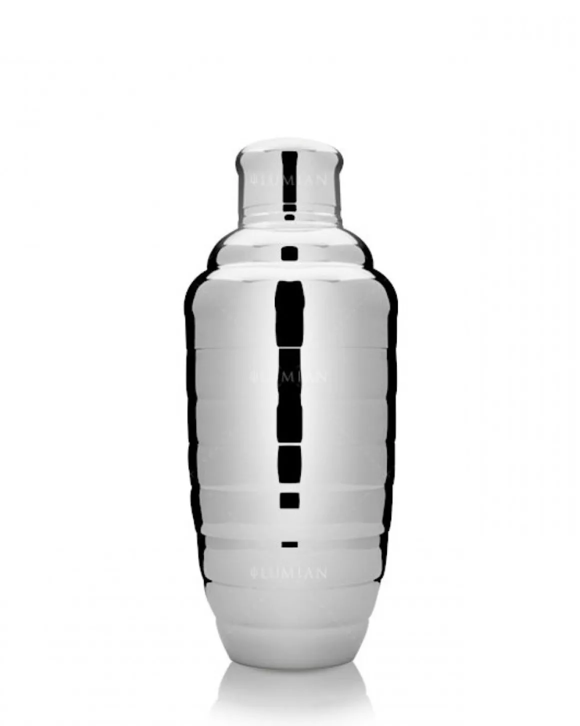 Der Cocktail Shaker Bomber sticht durch sein abgerundetes Design mit mehreren horizontalen Linien hervor. Er ist auch in den Farben Gold, Kupfer, Bronze und Schwarz erhältlich.