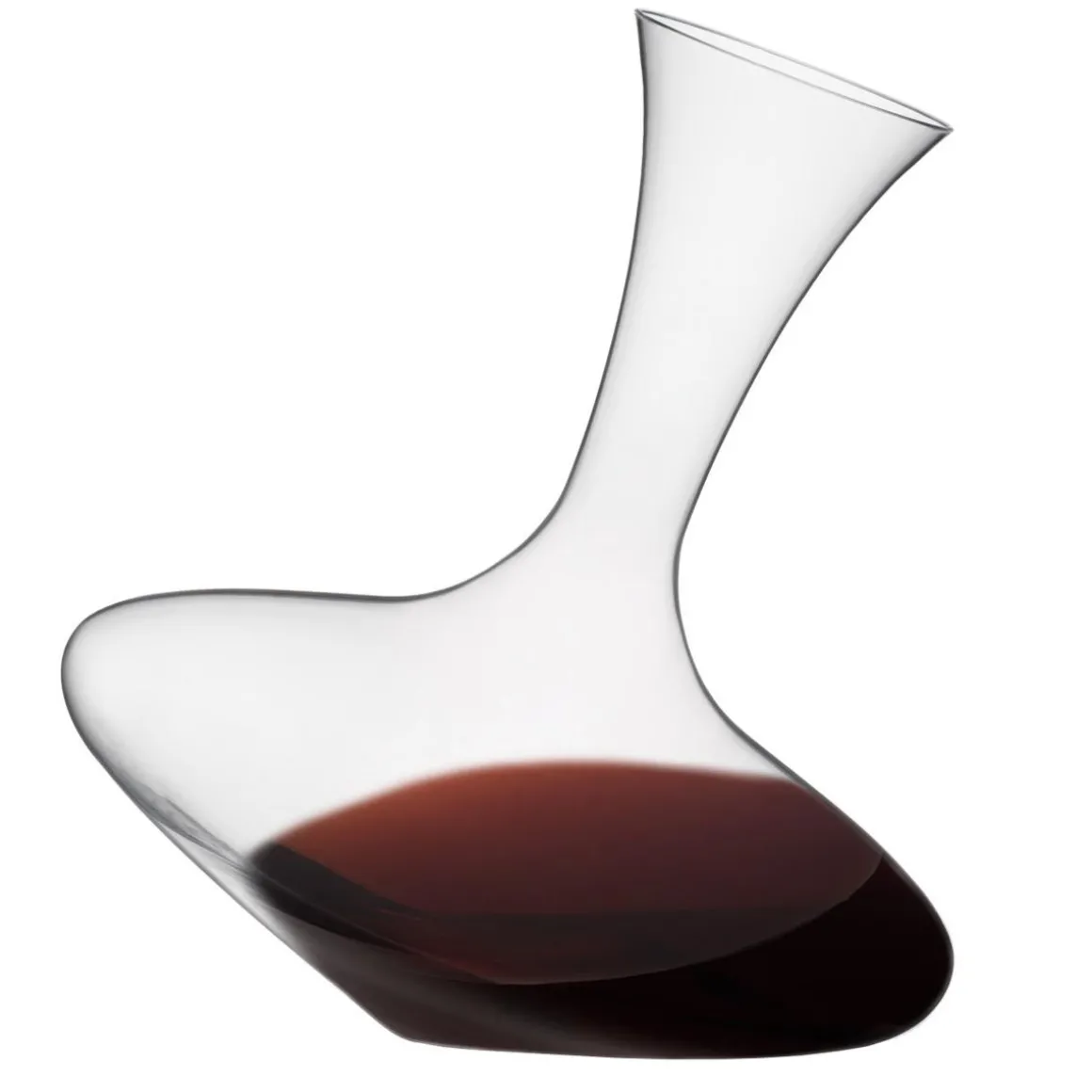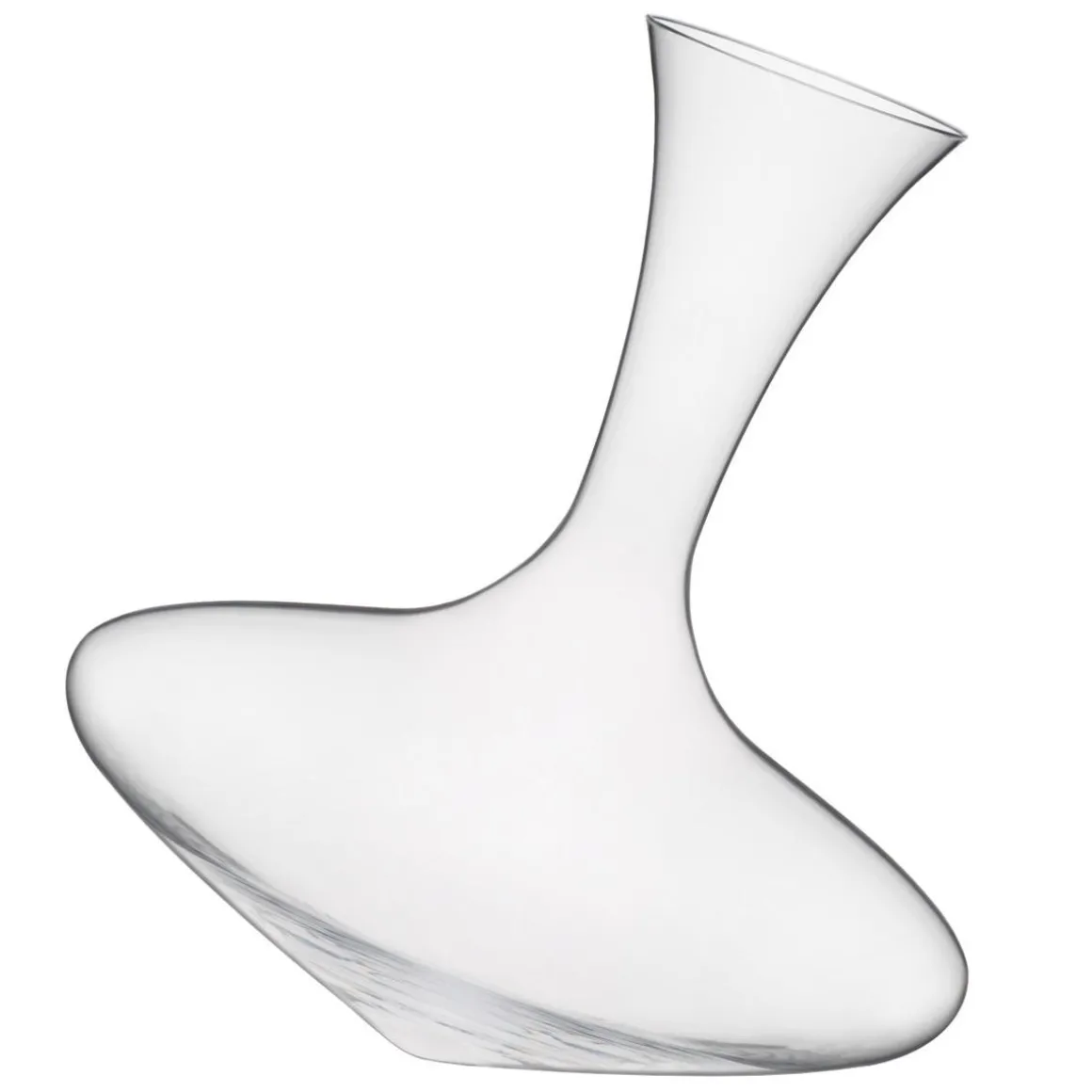 Der elegante Dekanter fällt direkt durch seine besondere Form auf. Der Dekanter hat keinen flachen Boden auf dem er senkrecht steht sondern liegt angewinkelt auf der Unterseite des Dekanterbauchs, der in einer Spitze ausläuft. Der Dekanter hat eine stabile Lage und kippt weder leer noch mit Wein gefüllt um. Er kann aber um sich selbst gedreht werden, wenn er auf einem Tisch liegt. Durch seine extravagante Form zieht der Rotweindekanter die Blicke auf sich und macht jedes Essen zu etwas besonderem.