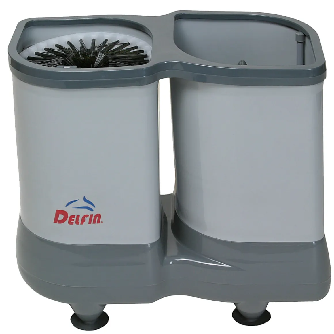 Der Delfin TS 1100 passt in alle gängigen Gewerbespülbecken (30×40 cm, 40×40 cm und 30×50 cm). Man erhält somit getrenntes Vor- und Nachspülen in einem Spülbecken.