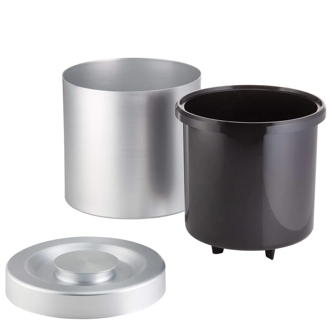 Eiseimer aus Aluminium mit Deckel und einem herausnehmbarem Einsatz aus Polystyrol. Der Eiseimer hat ein Volumen von 3 Liter.