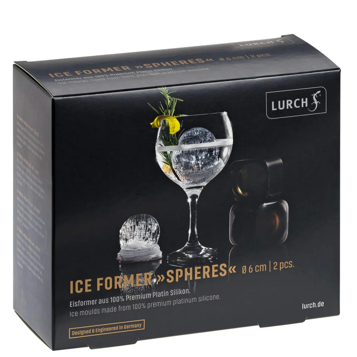 Zwei hochwertige Eiswürfelformen für große Kugeln mit Deckel aus Platin Silikon. Die Eiswürfelformen erzeugen je eine Kugel mit einem Durchmesser von 6 cm.