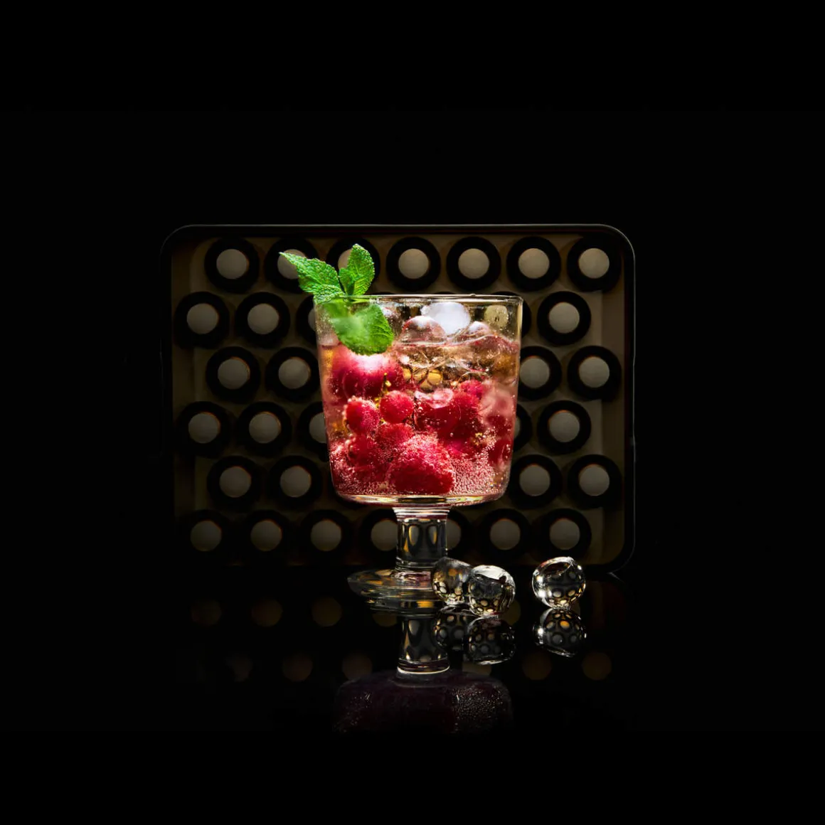 Hochwertige Eiswürfelform für Kugeln mit Deckel aus Platin Silikon. Die Eiswürfelform hat Einzelkammern für 42 Eiskugeln mit einem Durchmesser von 2 cm.