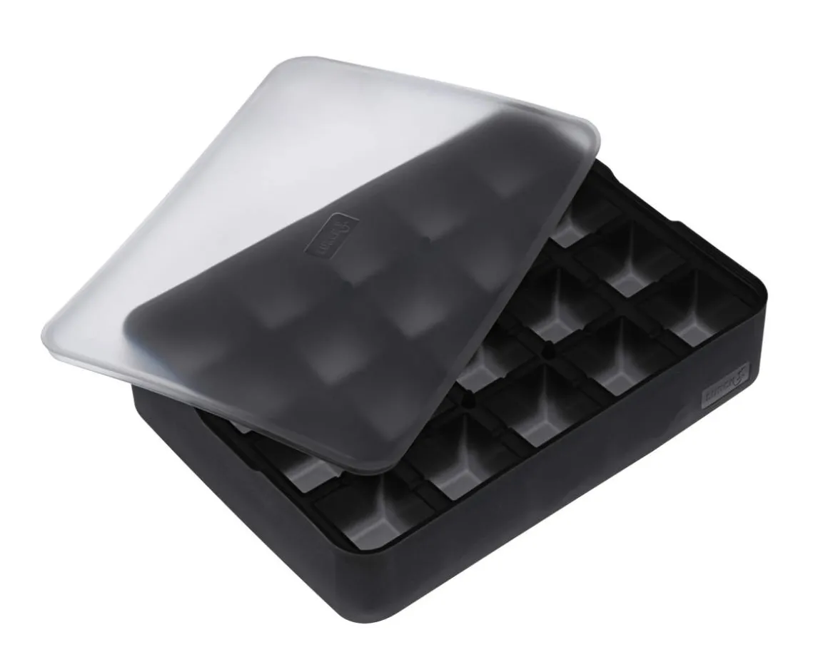 Hochwertige Eiswürfelform mit Deckel aus Platin Silikon. Die Eiswürfelform hat Einzelkammern für 20 x 3 cm Würfel.