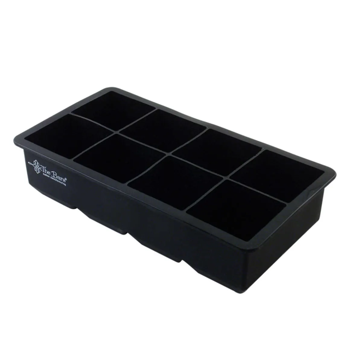 Eiswürfelform aus schwarzem Silikon für 8 Eiswürfel mit einer Kantenlänge von 4,8 cm.