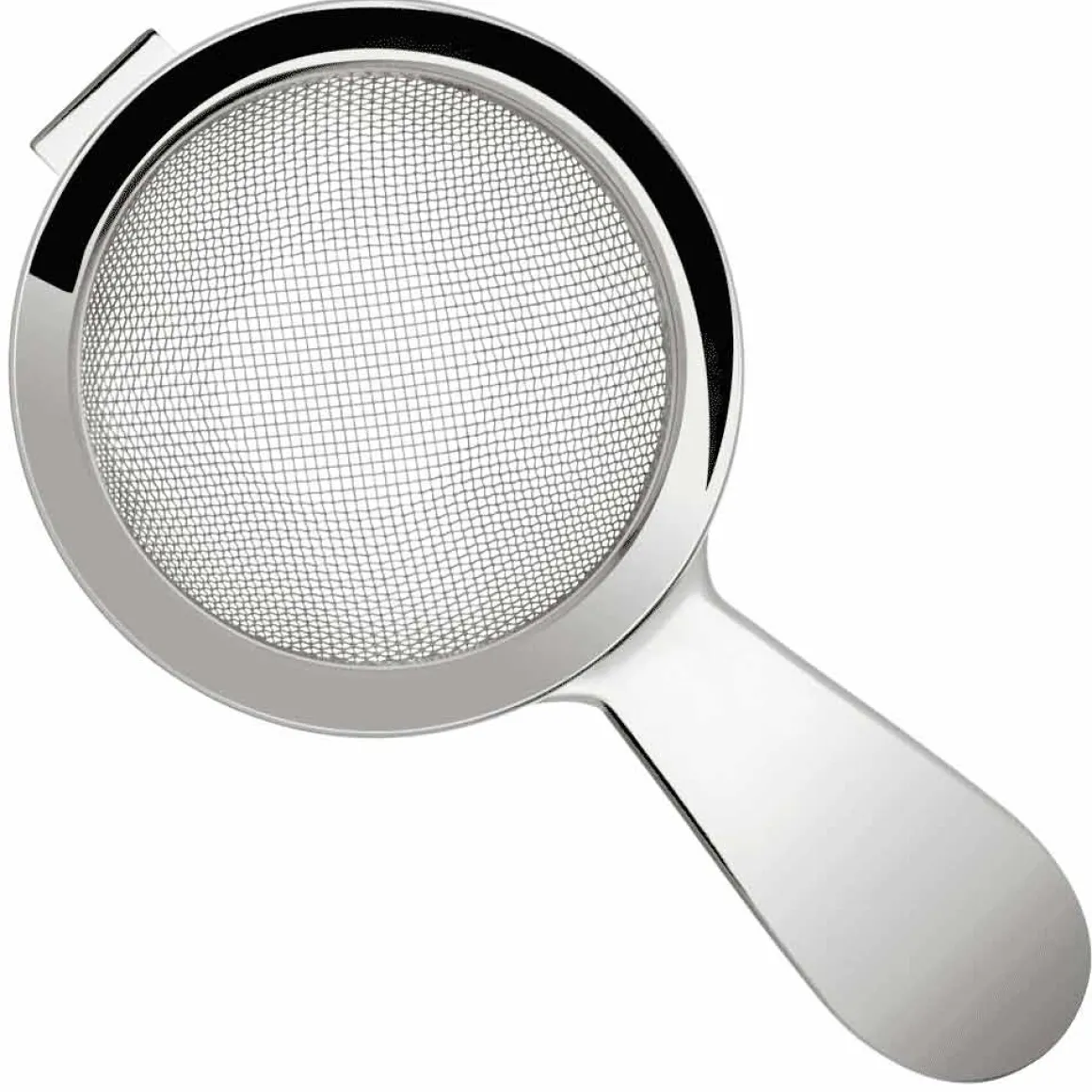 Das Feinsieb läuft nach unten konisch zu, hat aber kein spitzes Ende. Dies sorgt dafür, das der Cocktail beim Eingießen gesammelt vom unteren flachen Bereich des Barsiebs in das Glas läuft.
