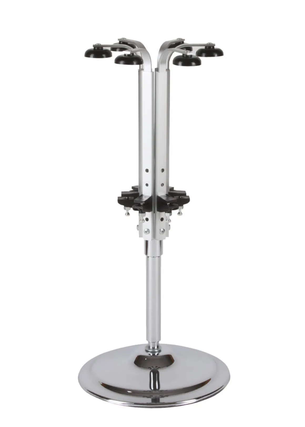 Flaschenhalter Rondel für 6 Flaschen. Der Thekendrehständer lässt sich flexibel ohne Verschrauben auf der Theke oder Bar platzieren. Der schwere Standfuß sorgt für einen sicheren Stand. Da das Rondel auf dem Standfuß gedreht werden kann ist jede Flasche leicht zu erreichen. Die Flaschen werden mit der Öffnung nach unten zusammen mit einem Spirituosen-Dosierer befestigt. Die Flaschen werden oben mit einem verstellbaren Arm festgehalten.