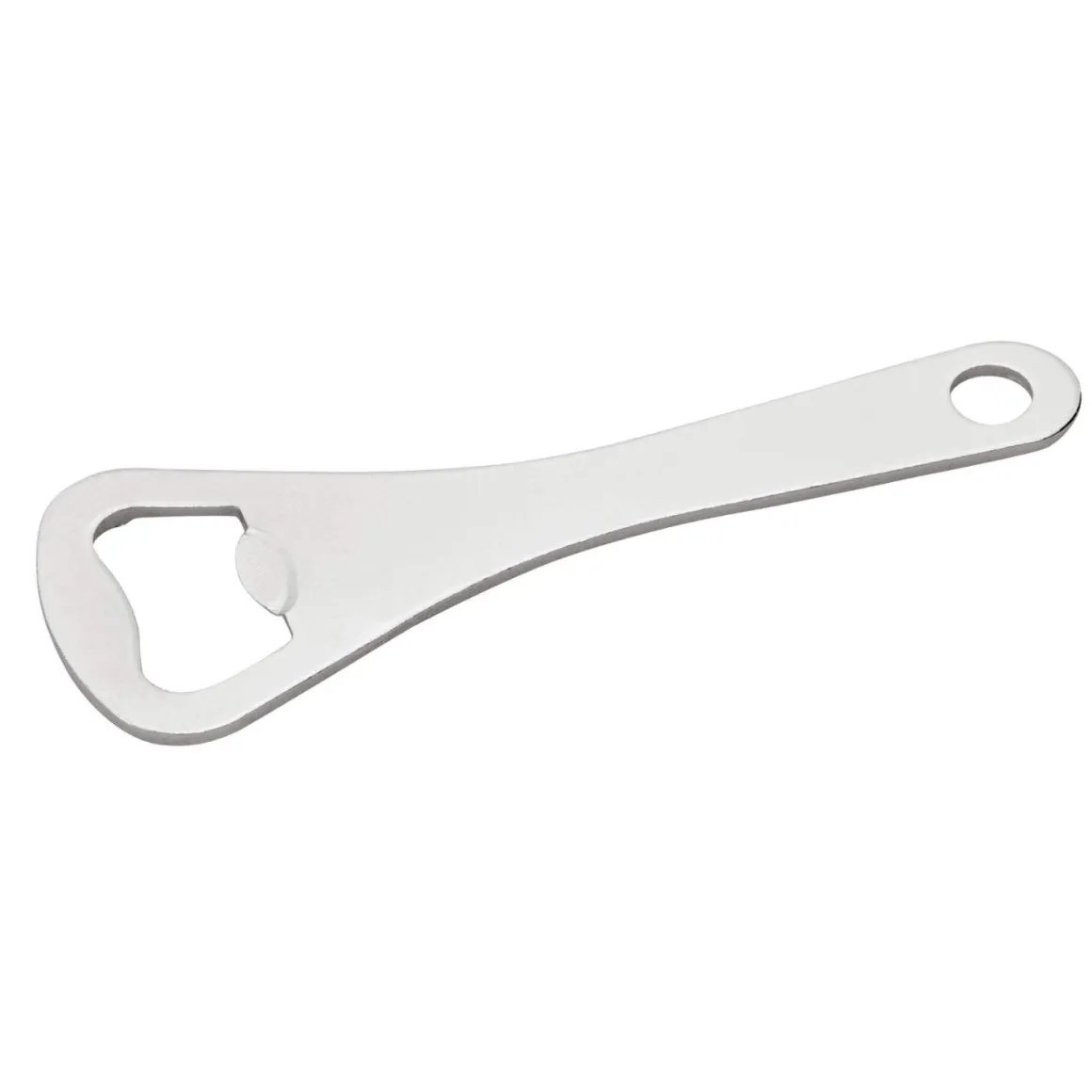 Verchromter Flaschenöffner aus Metall für Kronkorken mit einer Länge von 11 cm. Der Kapselheber besitzt eine Aufhängeöse mit der er an einer Kordel festgebunden werden kann.