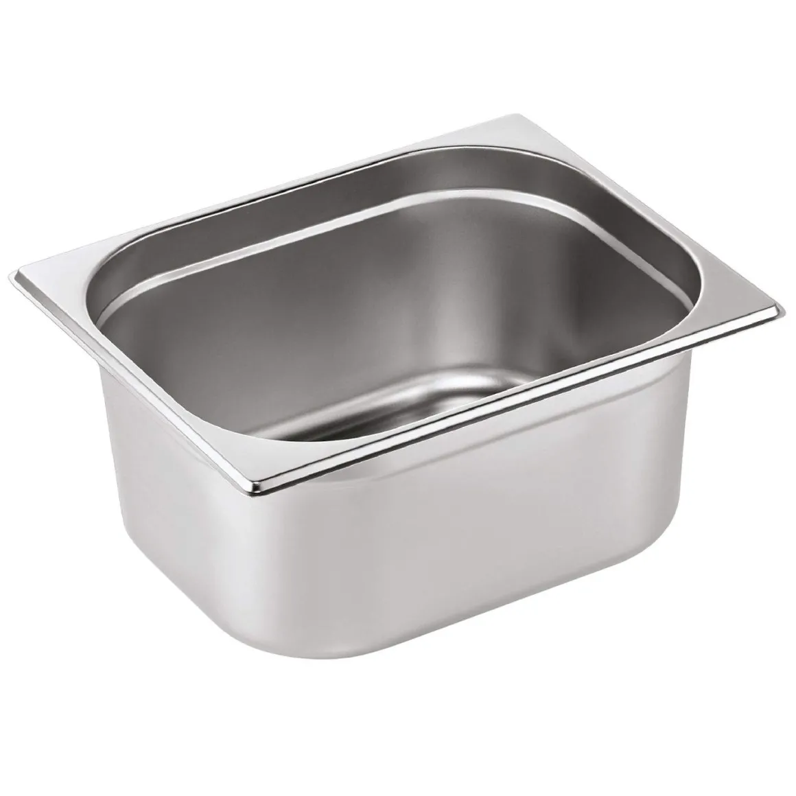 Gastronormbehälter GN 1/2, Höhe 15 cm aus der Serie GN Essentials mit den Maßen 32,5 x 26,5 cm ist aus Chromnickelstahl gefertigt und ideal für die professionelle Küchenorganisation. Die Serie bietet eine solide und kostengünstige Lösung für den täglichen Einsatz in Gastronomie, Catering und Gemeinschaftsverpflegung.
