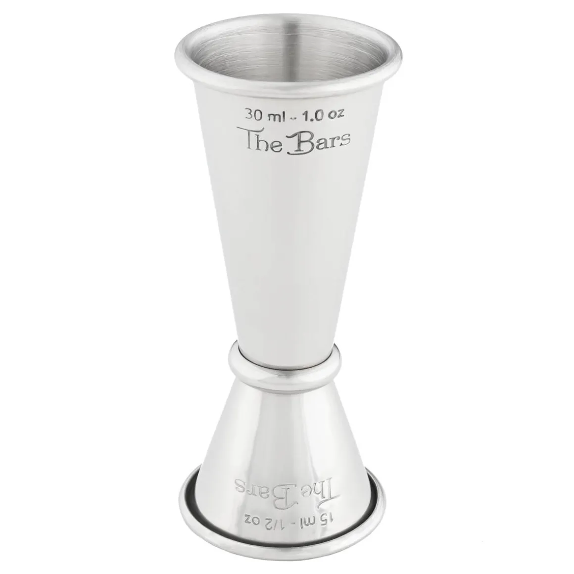 Jigger Japan aus Edelstahl in Silber zum Abmessen von 15 ml (0,5 oz) und 30 ml (1 oz).