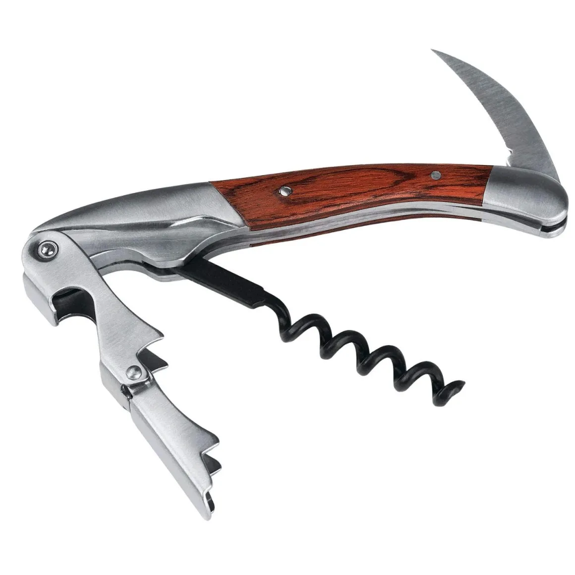 Das Kellnermesser Deluxe mit Holzgriff verbindet klassische Optik mit zuverlässiger Funktionalität. Der Griff aus Holz verleiht dem Messer eine warme, hochwertige Anmutung und sorgt für eine angenehme Haptik.