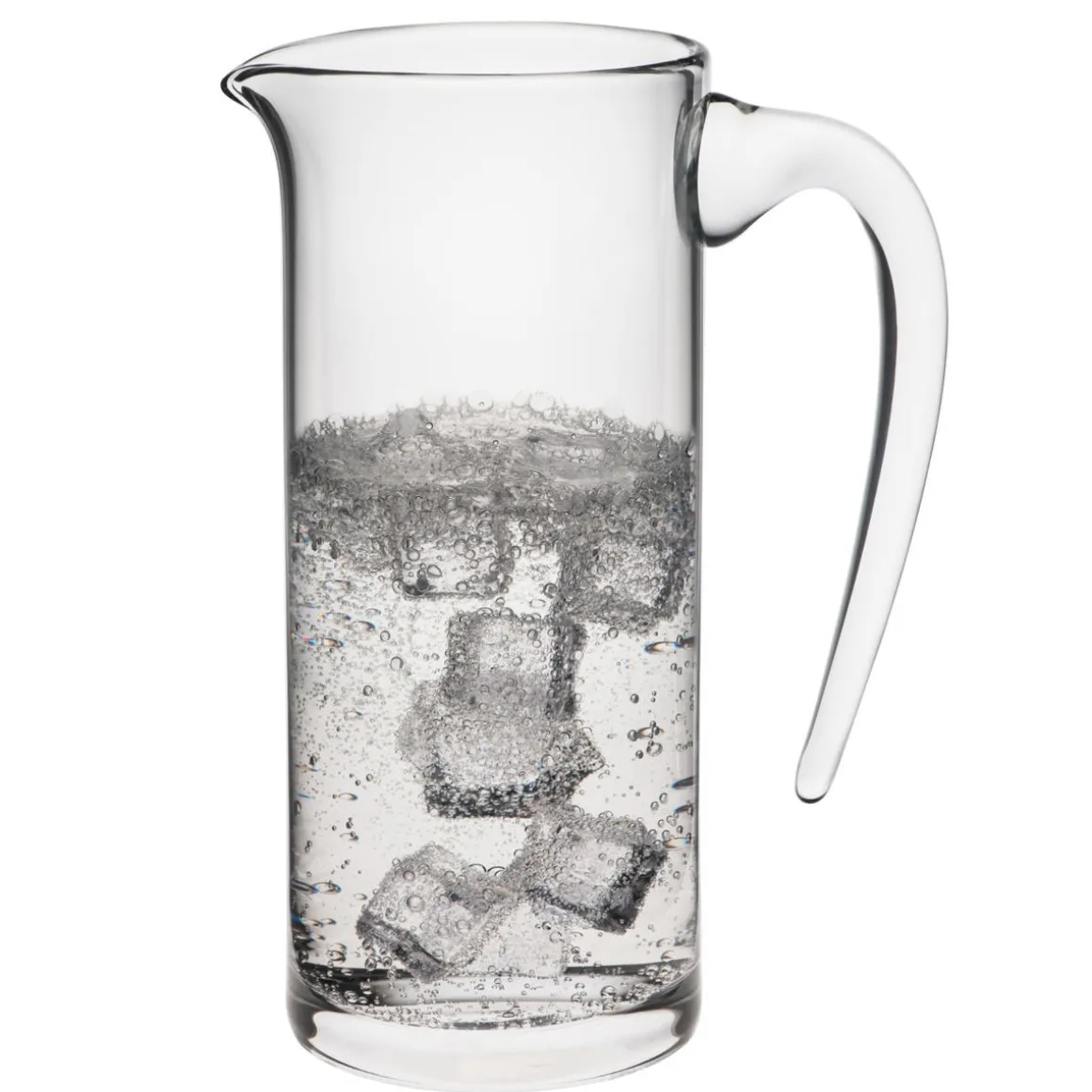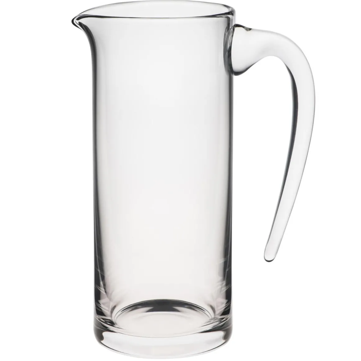 Hochwertiger Glaskrug Toscana aus Kristallglas mit zylindrischer Form und einem Volumen von 800 ml. Durch die Verwendung von Kristallglas ist der Krug besonders klar und farbneutral. Zusammen mit dem Griff aus Glas, der nur an einer Stelle am Krug angebracht ist erhält man so eine besonders elegante Möglichkeit um Wasser, Saft und andere Getränke zu servieren.