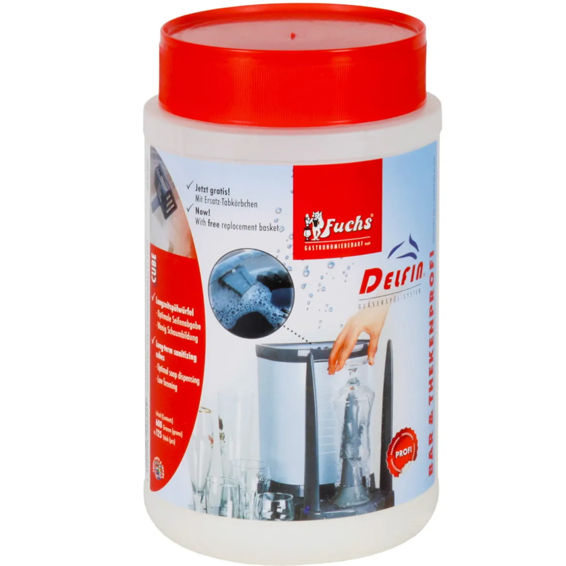 Spülmittel zum Reinigen von Trinkgläsern in Würfelform. Geben Sie einen Spülwürfel in ihren Glasspülapparat, wie die Delfin TS 1100 – 3100. Eine Dose enthält 125 Spülwürfel.