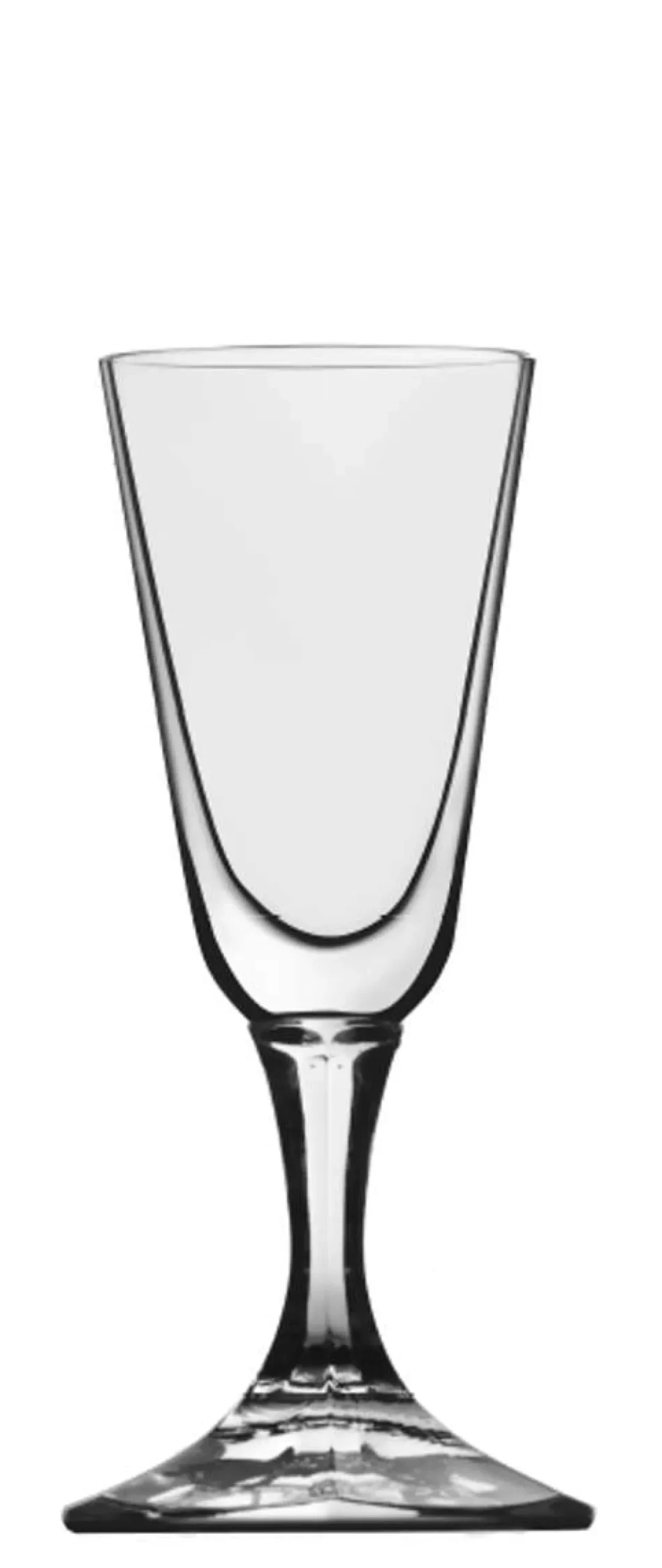 Die konische Schale des Schnapsglases sitzt auf einem kurzen Stiel, der die Proportionen des Glases hervorhebt. Servieren Sie Liköre und hochprozentige Spirituosen in diesem Likörglas.