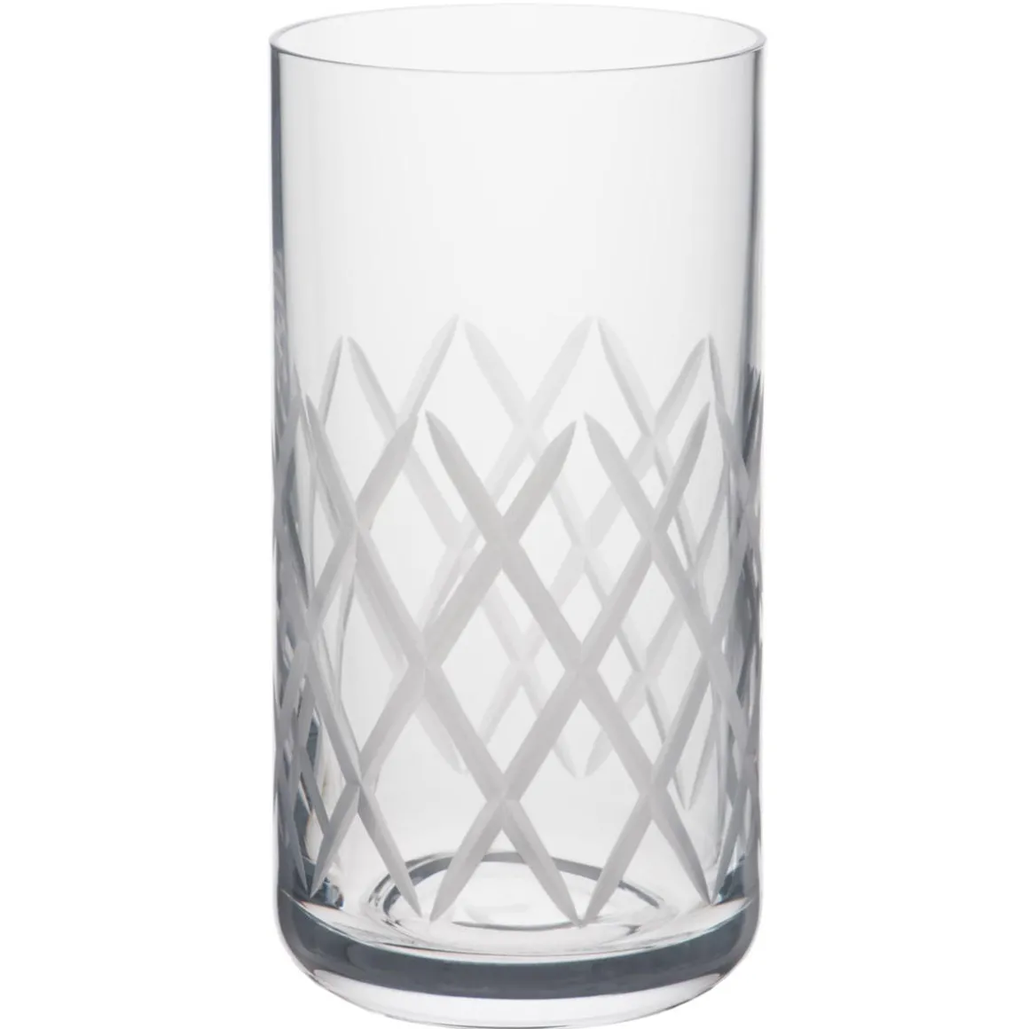Longdrinkglas mit klassischem Karomuster aus Kristallglas. Als Besonderheit besitzt die eingeschliffene Verzierung eine mattes Finish. Mit 390 ml Volumen sehr gut für Cocktails und Longdrinks geeignet.