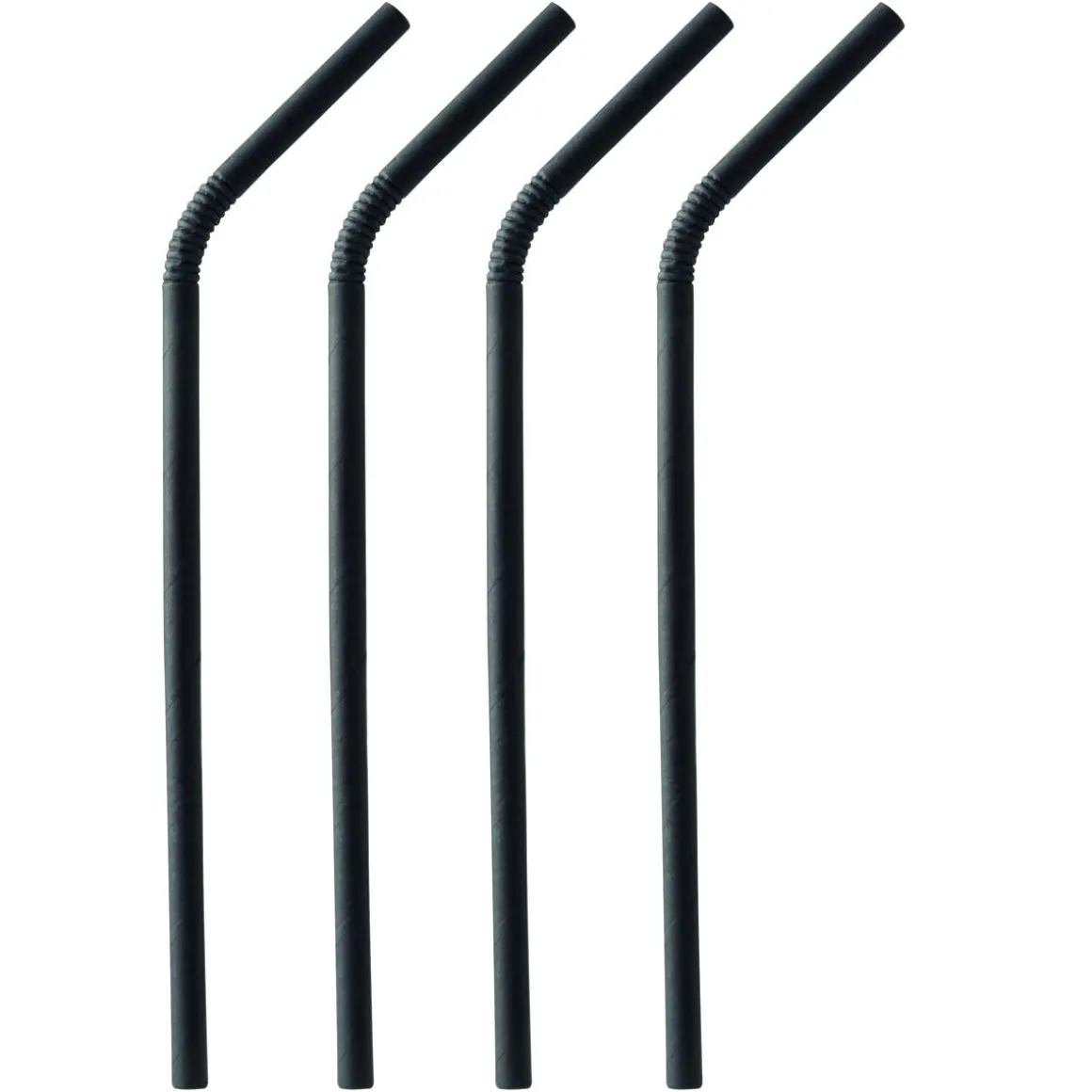 Biegbarer Strohhalme aus Papier in Farbe Schwarz. Die Trinkhalme haben eine Länge von 22 cm und einem Durchmesser von 6 mm. Die Papierstrohhalme haben einen biegbaren Abschnitt.
