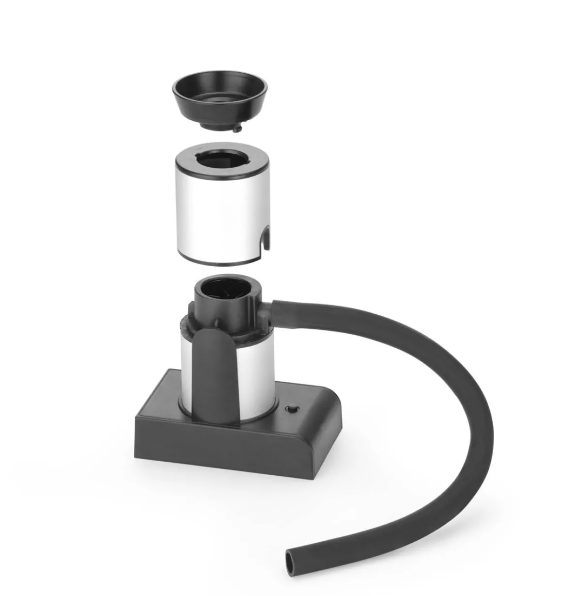 Die Räucherbox wird von oben mit Holz, Tee oder Gewürzen befüllt. Holz benötigt kein Vorwässern, wodurch die Anwendung erleichtert wird. Der Rauch wird im Aluminiumkörper abgekühlt und durch den 30 cm langen und flexiblen Gummischlauch abgegeben. Der Schlauch kann an eine Glashaube angeschlossen werden, um den Rauch in dieser zu verteilen.