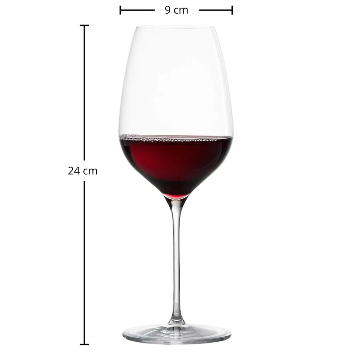 - Großzügiger Kelch – betont Tiefe & Struktur kräftiger Rotweine