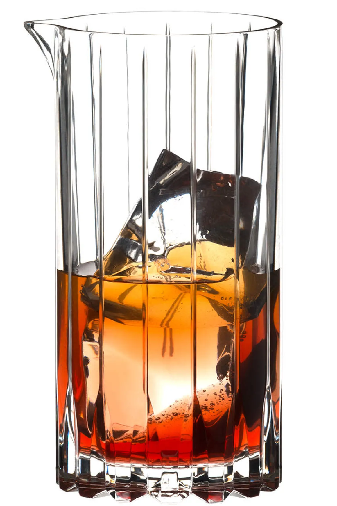 Das Riedel Rührglas aus der Serie Drink Specific Glassware – Riedel Bar zum Rühren und Herunterkühlen von Cocktails. Das Rührglas hat die gleichen vertikalen Verzierungen wie die Tumbler und Longdrinkgläser aus der Riedel Bar Serie und eine Ausgusslippe zum gezielten Eingießen Ihres Cocktails.