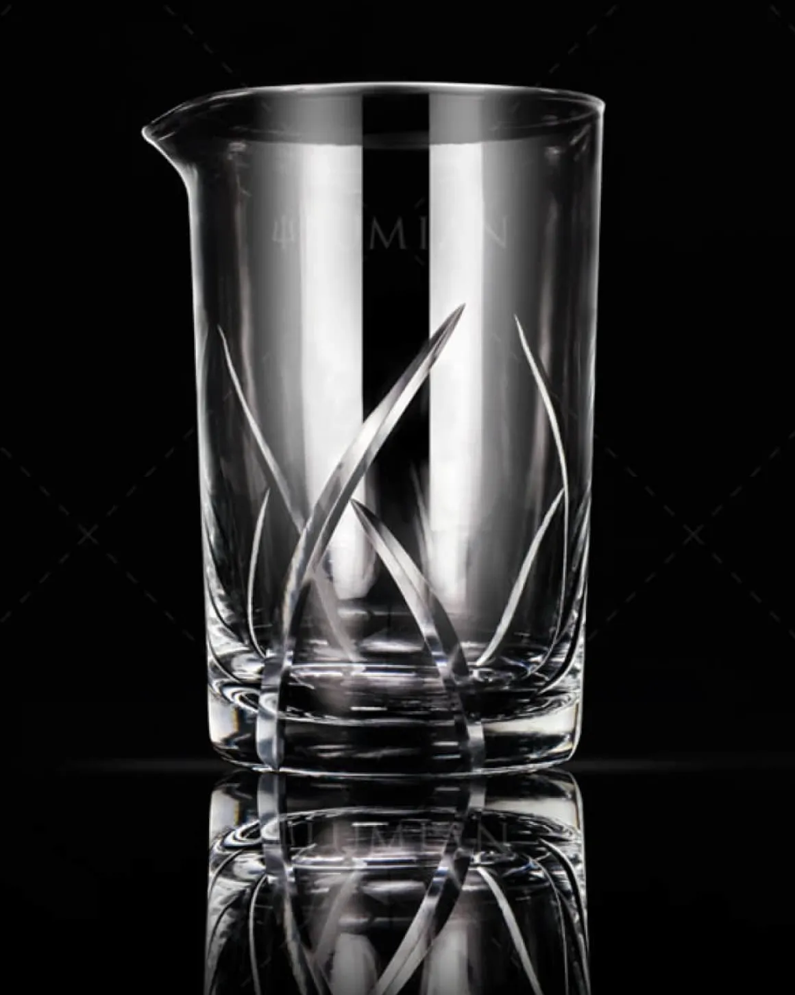 Mixingglas für gerührte Cocktails. Von Hand verziert mit leicht geschwungenen Linien.