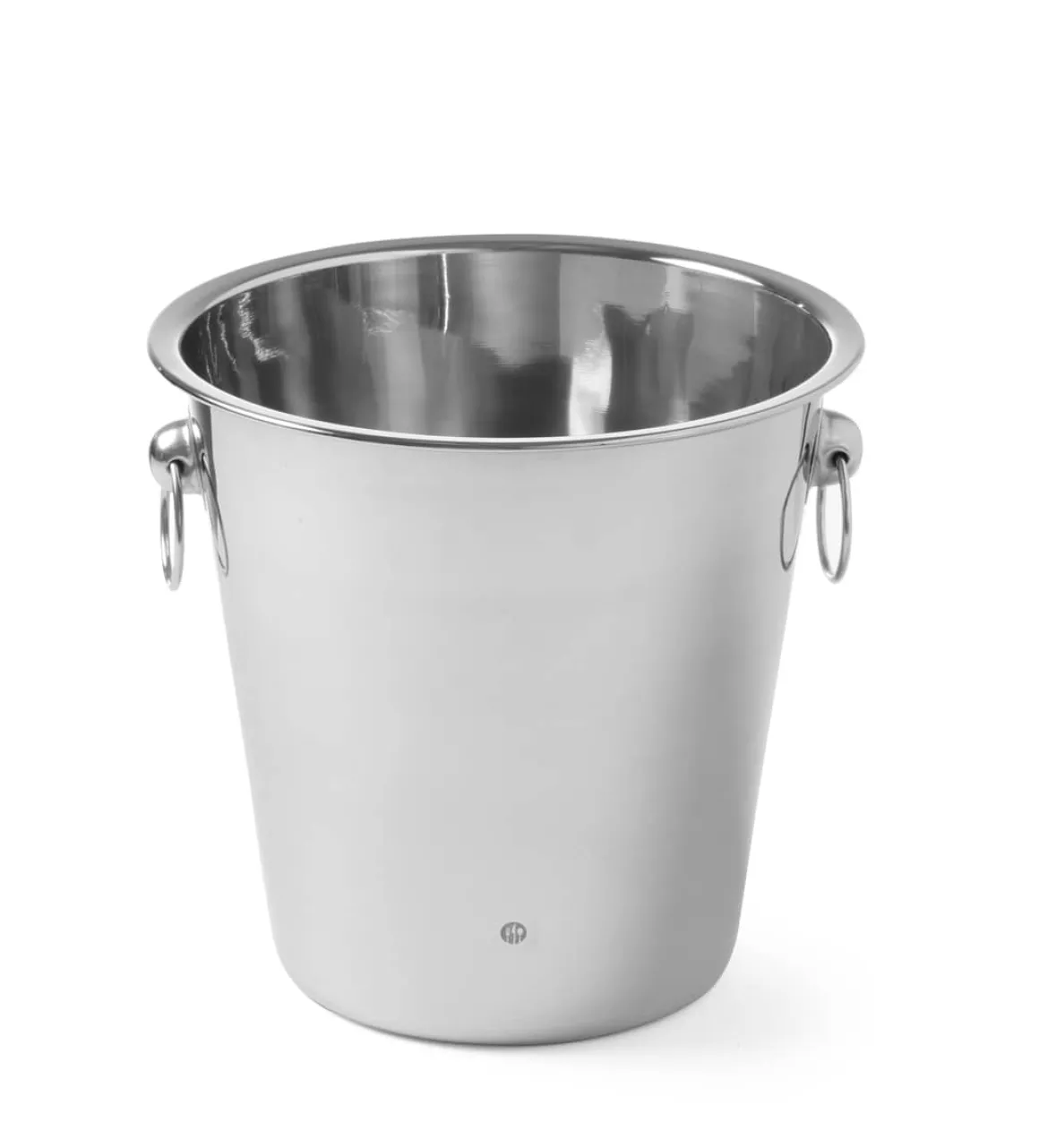 Edelstahl Sektkühler mit zwei Ringen als Tragegriffe. Füllen sie den Sektkühler mit Eis auf um Wein, Sekt und andere Getränke lange kalt zu halten.