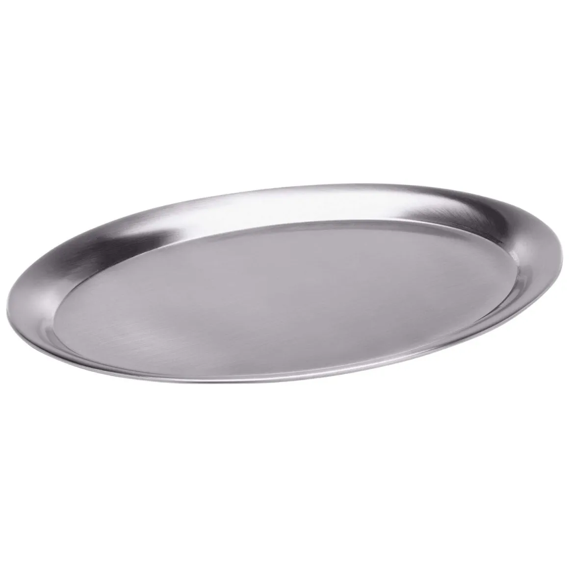 Das Tablett besteht aus mattiertem Edelstahl, der für eine hochwertige und zugleich zurückhaltende Optik sorgt. Die ovale Form ermöglicht eine angenehme Handhabung im Service, während der leicht erhöhte Rand für sicheren Halt beim Tragen sorgt. Dank der robusten Verarbeitung ist das Tablett für den täglichen Einsatz geeignet und lässt sich einfach reinigen.