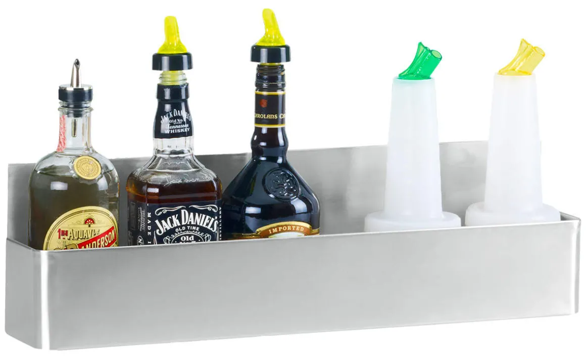 Das Speedrack kann an der Wand oder dem Tresen mit zwei Schrauben aufgehängt werden. So haben Sie Sirups, Säfte, Teig, Dressing und andere Flüssigkeiten direkt griffbereit und halten ihren Arbeitsplatz frei.