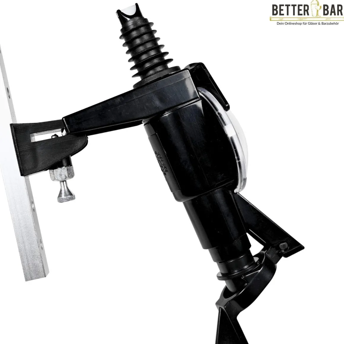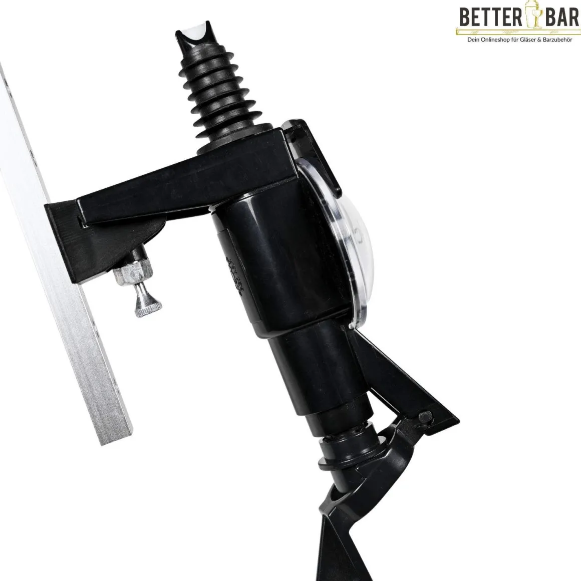 Spirituosen-Dosierer für Flaschenhalter. Mit einem Fingerhebel zum ausschenken des Alkohols. So können sie hygienisch korrekt Gläser ohne Kontakt mit dem Dosierer befüllen.