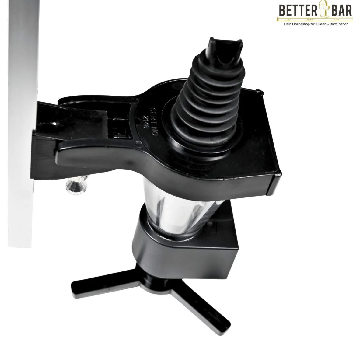 Verwenden Sie den System Portionierer mit Zählwerk zusammen mit einem Flaschenhalter zur Wandmontage oder mit Regalhalterung. Die hochwertige und langlebige Silikondichtung verhindert tropfen. Kein Verkanten beim Betätigen des Portionierers.