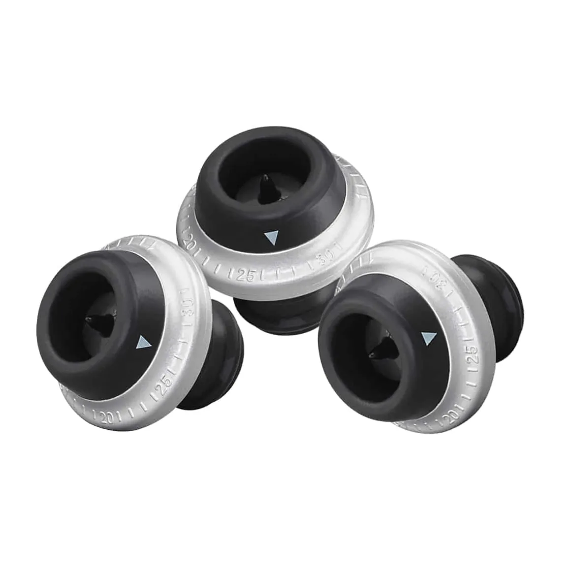 3 Ersatzstopfen für die Weinpumpe. Die Stopfen besitzen einen drehbaren silbernen Ring mit Datums-Anzeige. So wissen immer wie lange die Weinflasche schon geöffnet ist.