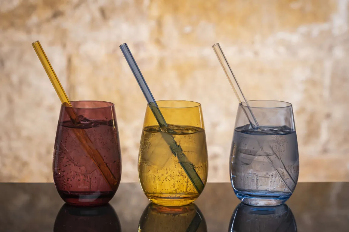 Die Wassergläser Elements sind in 10 Farben erhältlich. Das Wasserglas Event ohne Färbung besitzt die gleiche Form und Größe.