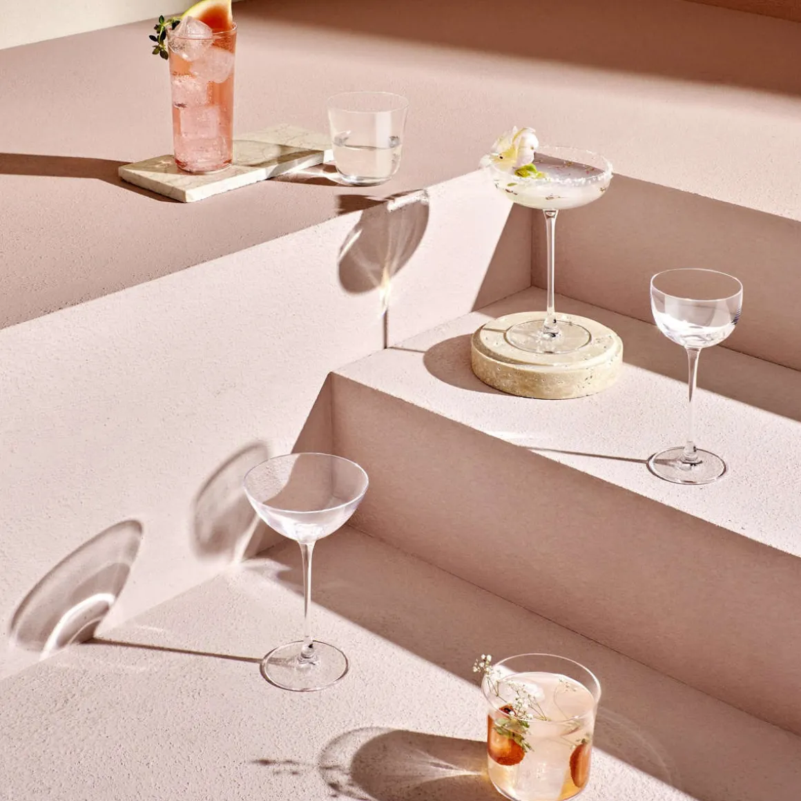 Passend zu den Wassergläsern aus der Serie Savage sind Tumber, Longdrinkgläser und drei Cocktailschalen erhältlich.