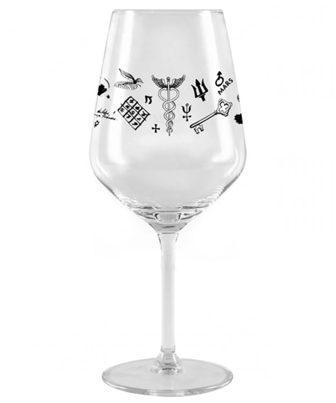 Die Symbole auf dem Weinglas bestehen aus schwarz-anthrazitfarbenem Siebdruck und sind spülmaschinenfest. Damit eignen sich die Gläser aus gehärtetem Glas auch für den Einsatz in Bars, Hotels und Speakeasys.