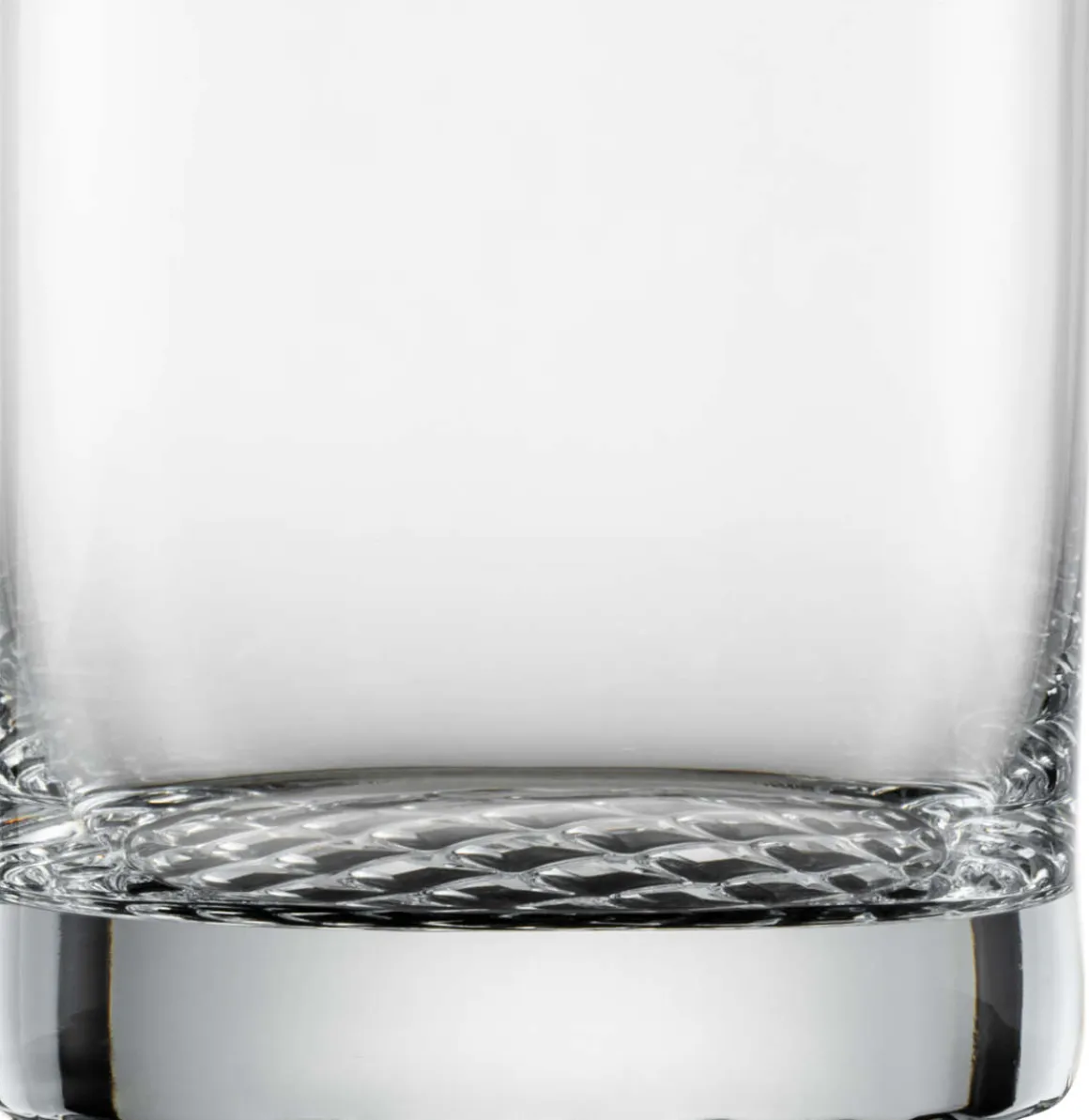 Whisky Tumbler aus der Serie Perspective von Schott Zwiesel. Das zylindrische Tumbler besitzt ein zeitloses Design mit einem Karomuster im Boden, wodurch man ein schönes Lichtspiel im Glas erhält. Servieren Sie Whisky und Cocktails in ihm.