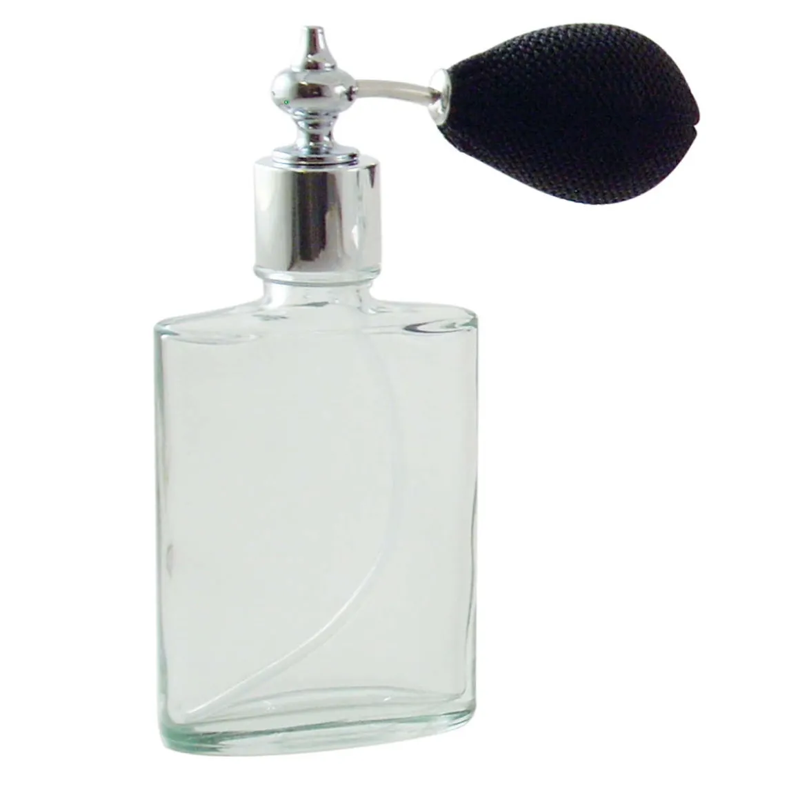 Die ovale Flasche hat ein Volumen von 50 ml. Sie wird mit einem eleganten Zerstäuber mit schwarzem Druckball verschlossen.
