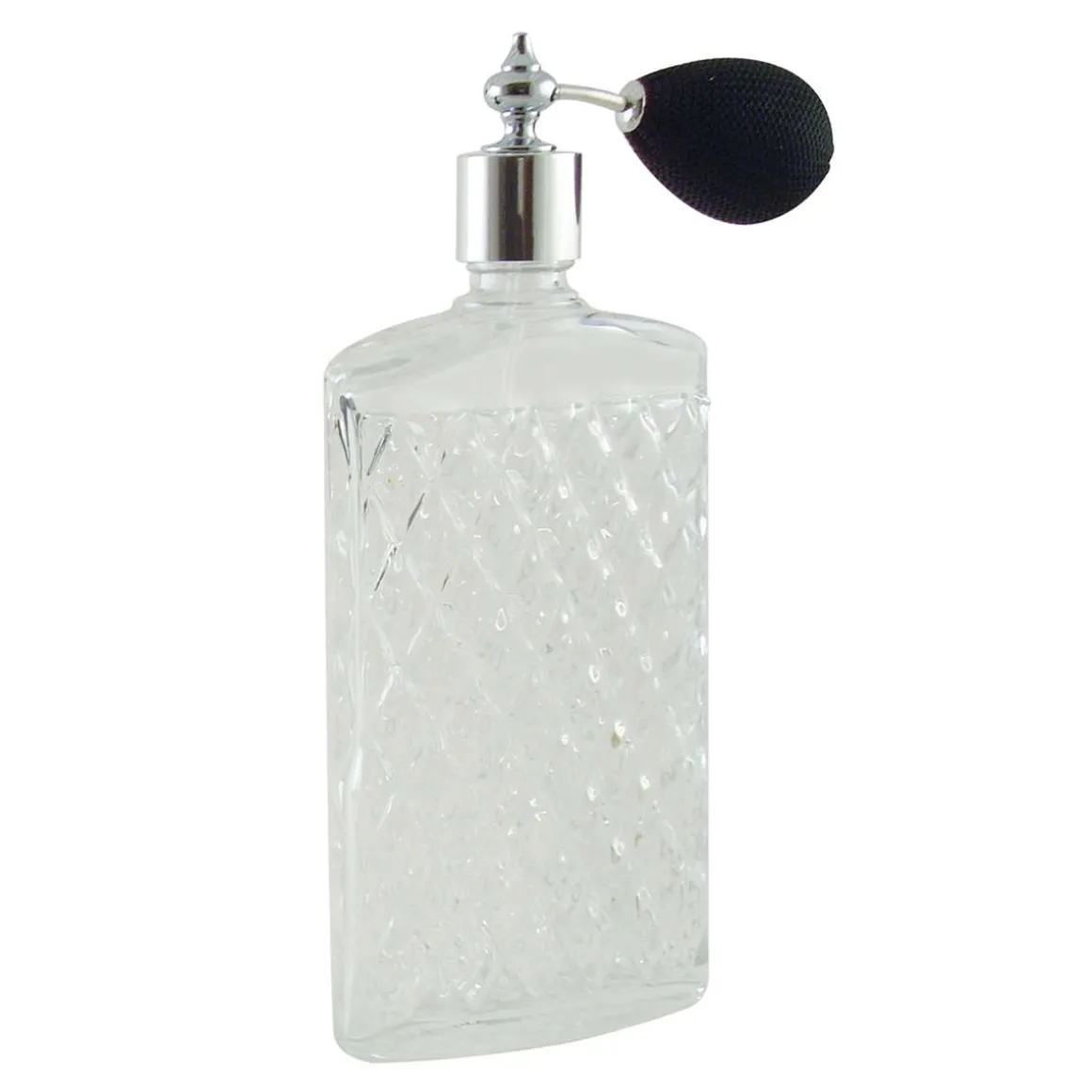 Die ovale Flasche hat ein Volumen von 200 ml und wurde mit einem dekorativen Karomuster verziert. Sie wird mit einem eleganten Zerstäuber mit schwarzem Druckball verschlossen.