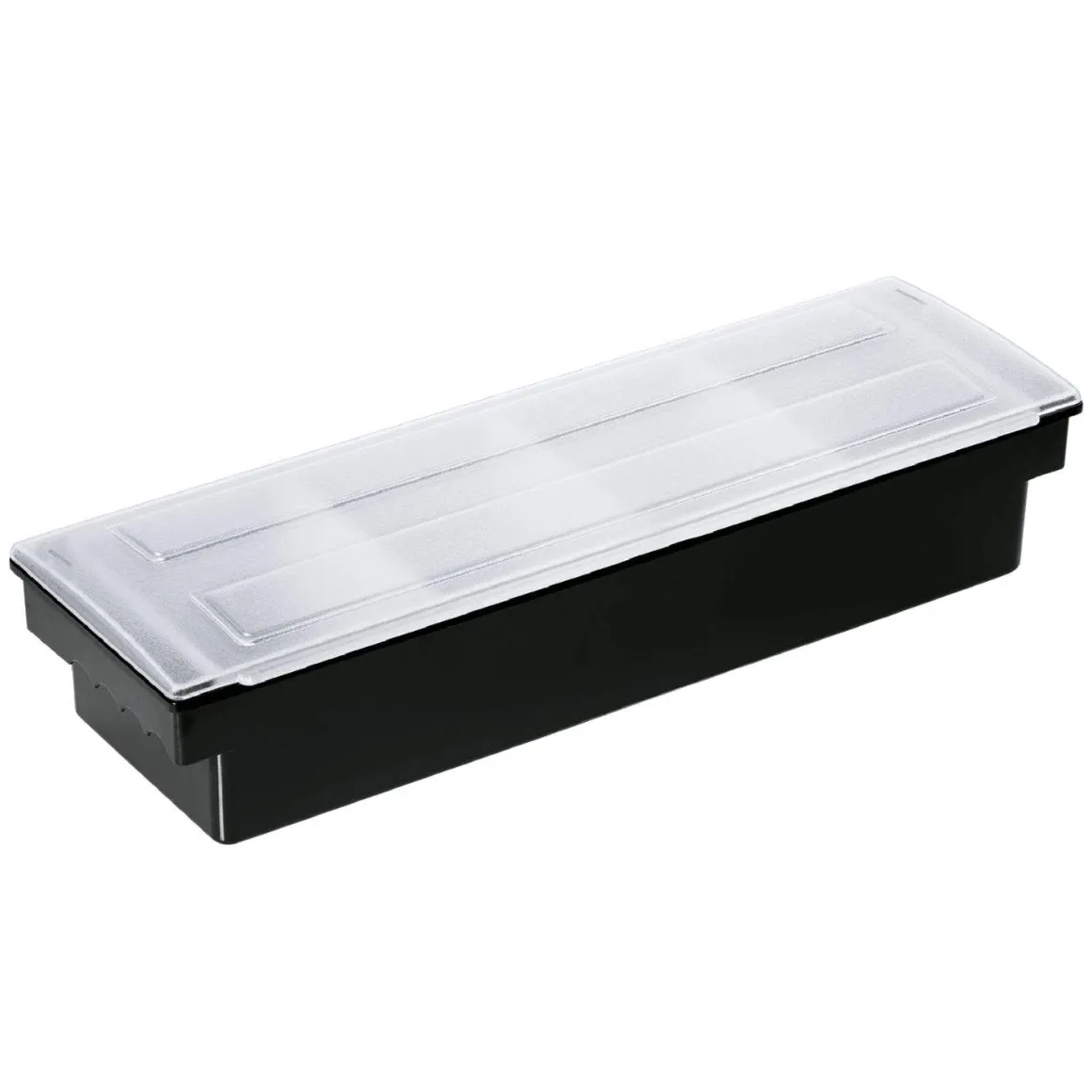 Der Behälter ist aus ABS-Kunststoff mit Polycarbonat-Einsätzen gefertigt, wodurch er robust, langlebig und leicht zu reinigen ist. Mit den Maßen 50 × 16 × 9 cm passt er perfekt auf Theken und Arbeitsflächen und sorgt für Ordnung und effiziente Abläufe.