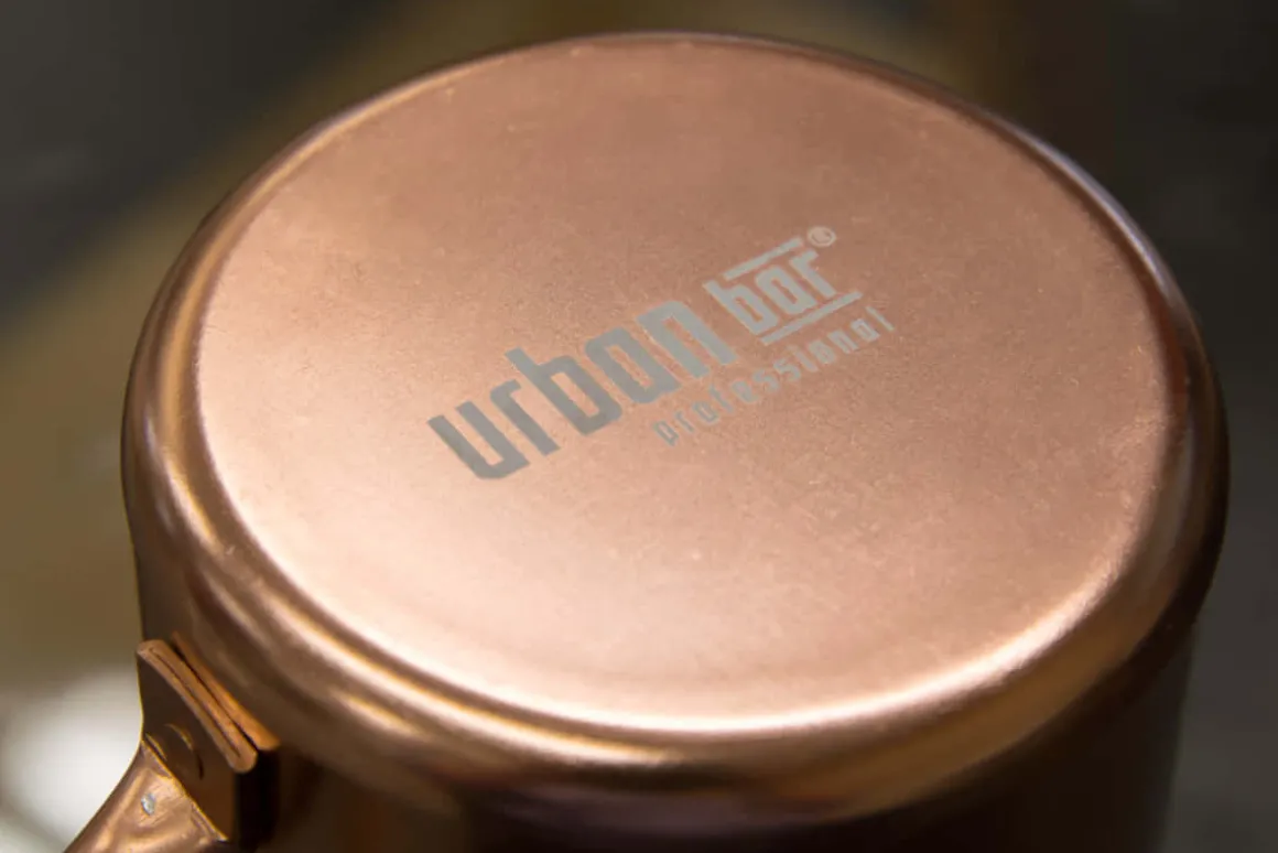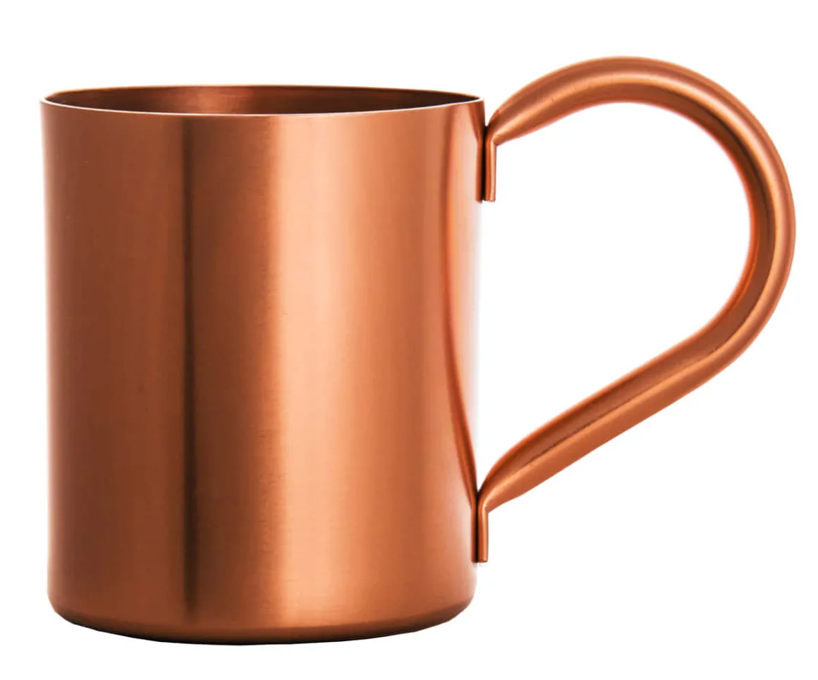 Klassischer Metallbecher aus Aluminium mit geraden Wänden und einem Fassungsvermögen von 500 ml. Der abgerundete Henkel liegt angenehm in der Hand und trägt zur urigen Optik bei. Der Becher aus 1,2 mm dickem Aluminium wurde kupferfarben beschichtet und hat ein gebürstetes Finish.